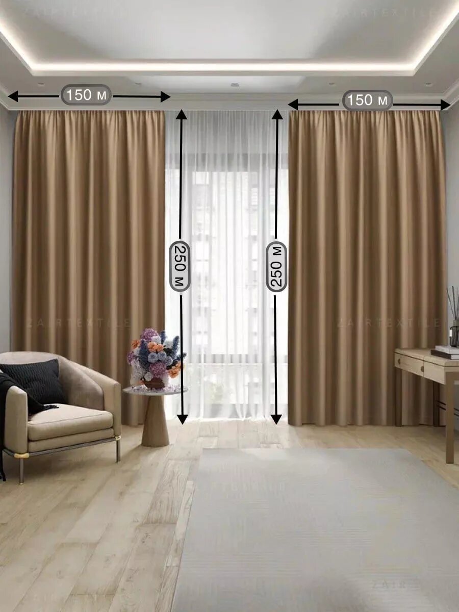 СохранитьШторы портьеры Блэкаут, темно бежевый комплект 150х250 (2шт.) интересное: