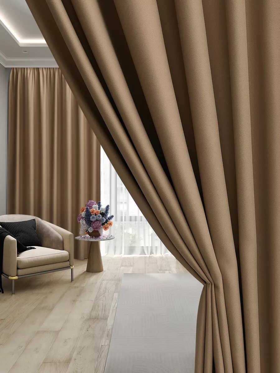 Шторы портьеры блэкаут темно бежевый комплект 150х250 (2шт.)