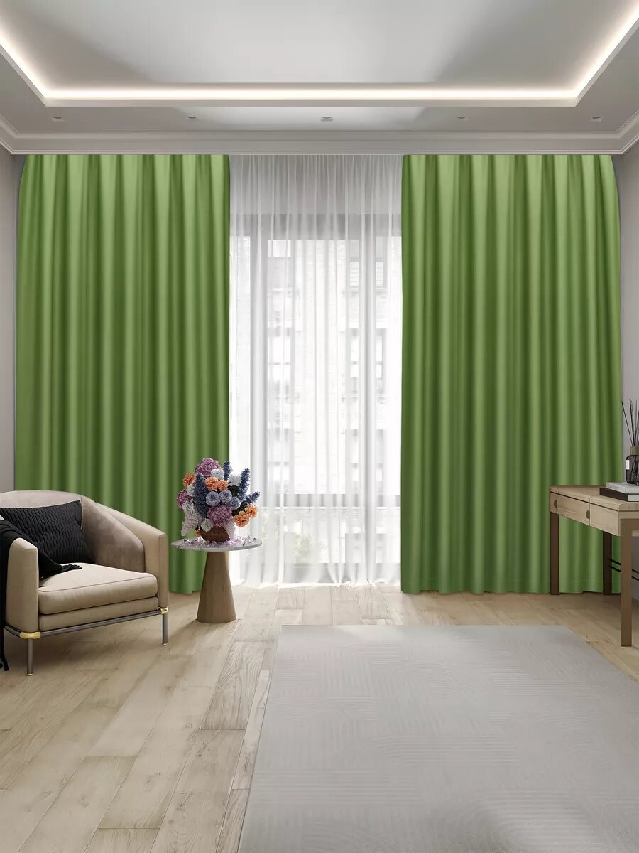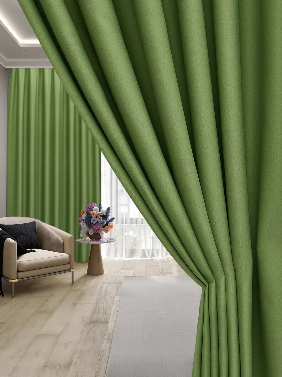 Шторы портьеры блэкаут, (комплект из 2шт.)150х270см, зеленый цвет