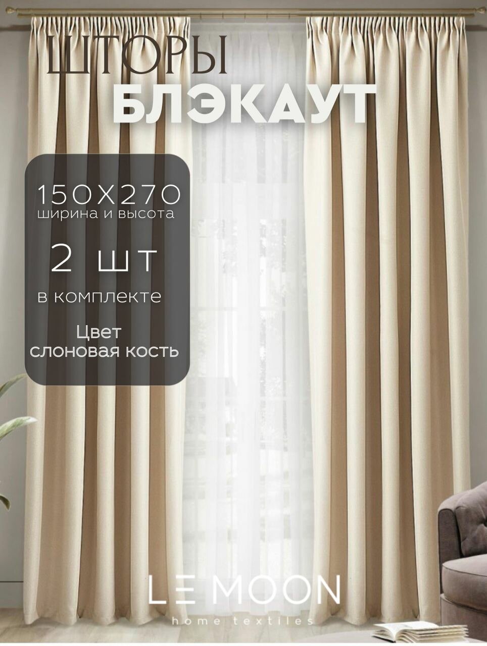 Шторы интерьерные Блэкаут LEmoon, 150*270 2шт; бежевый,слоновая кость интересное: