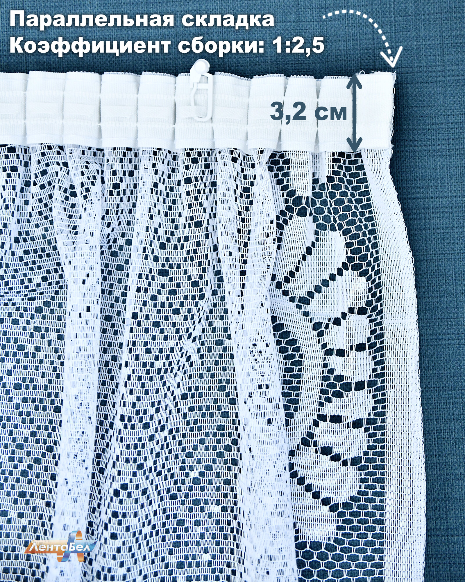 Тюль короткий для кухни 165*265 см со шторной лентой