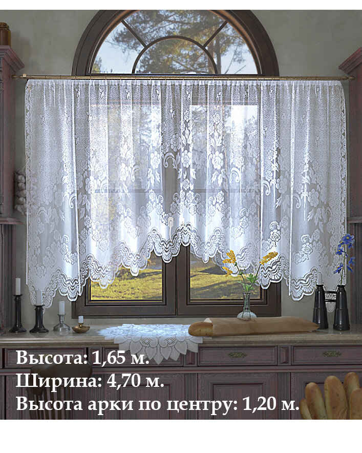 Тюль на кухню 470*165 см. Короткие занавески арка