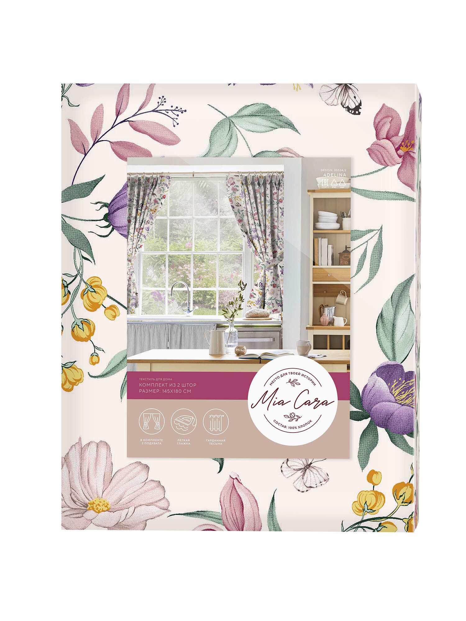 СохранитьКомплект штор с подхватом рогожка 145х180 (2 шт) "Mia Cara" рис 30534-2 Adelina интересное: