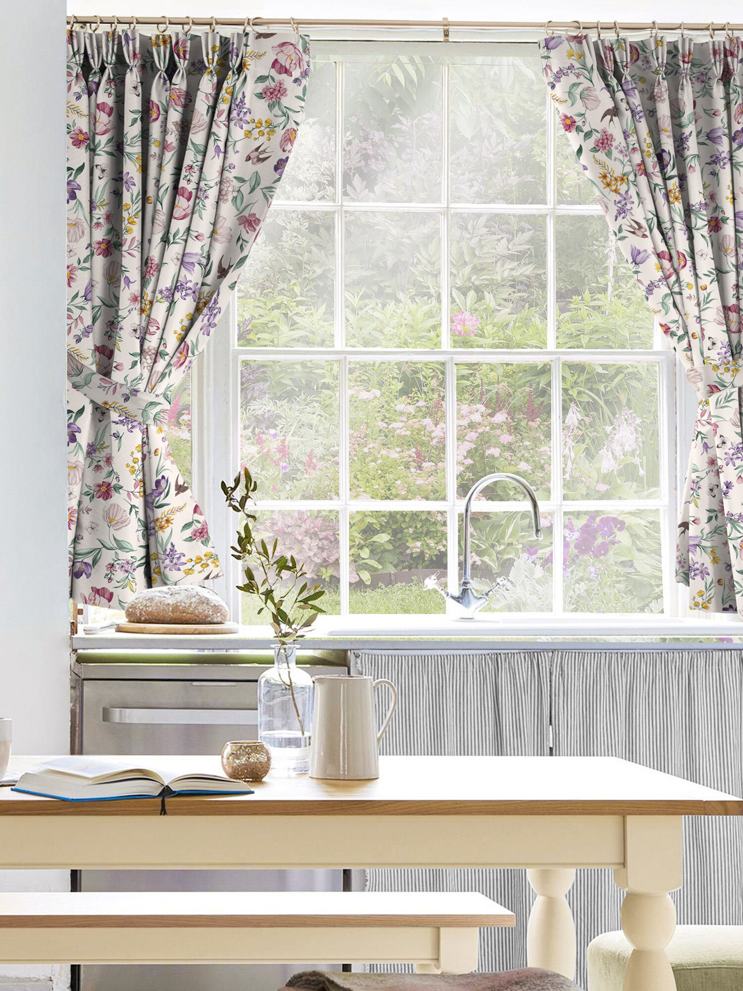 Комплект штор с подхватом рогожка 145х180 (2 шт) "Mia Cara" рис 14056-1 Душистый пион