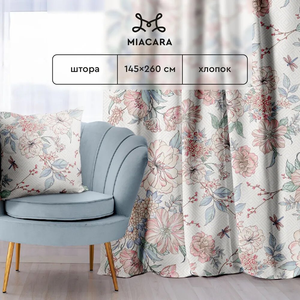 Штора рогожка 145х260 "Mia Cara" рис 30200-1 Душистый пион / Штора в гостиную, в комнату