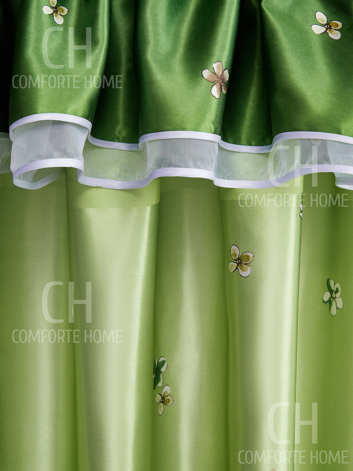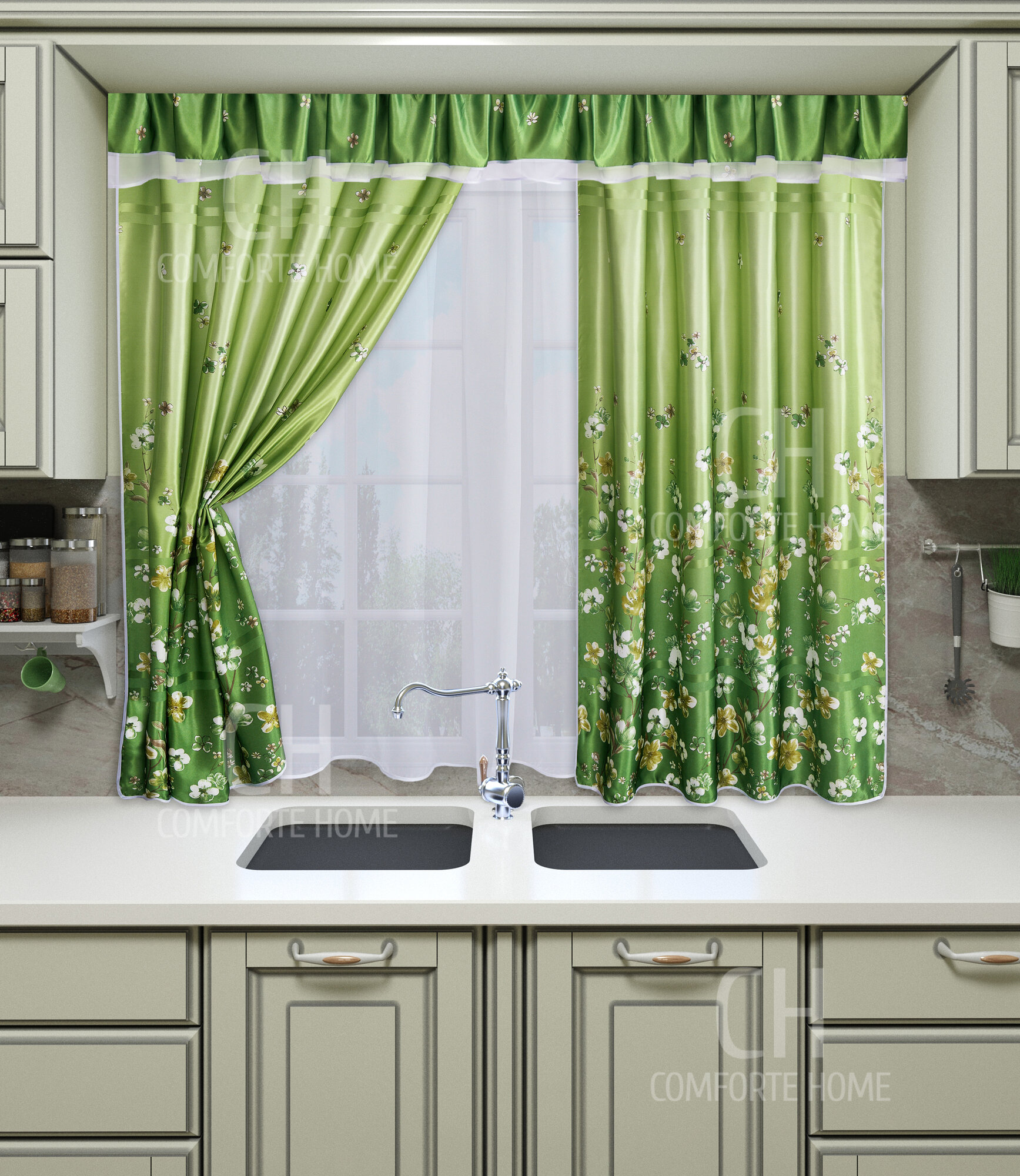 Комплект шторы и тюль на кухню с ламбрикеном Изумруд