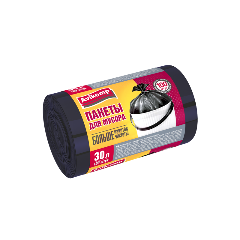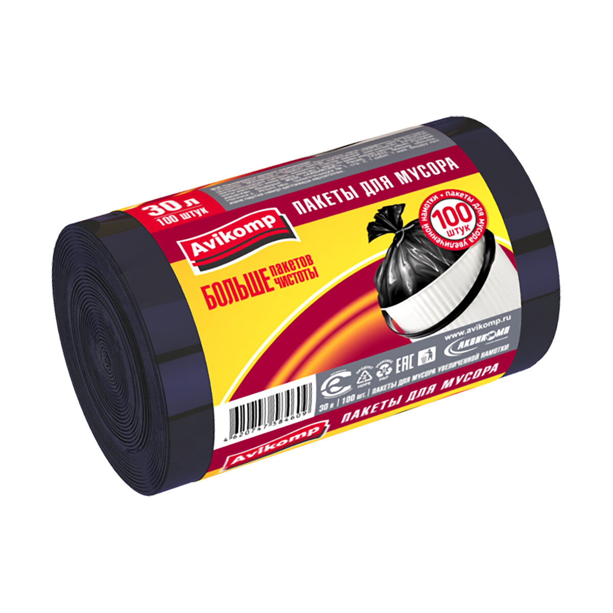 Мешки для мусора Avikomp, черные, 30 л, 100 шт, 1 уп