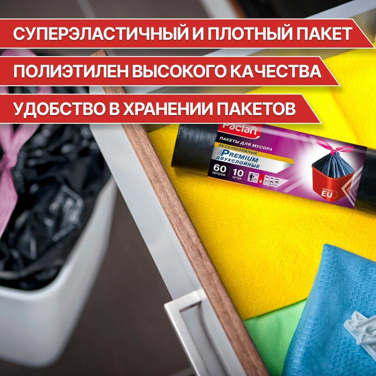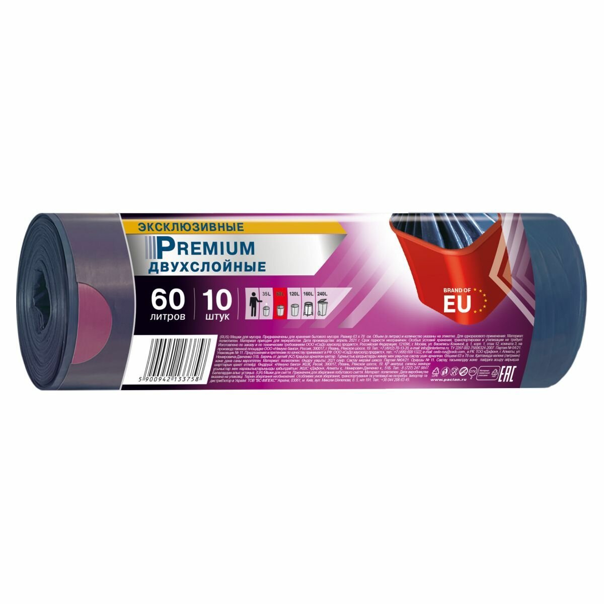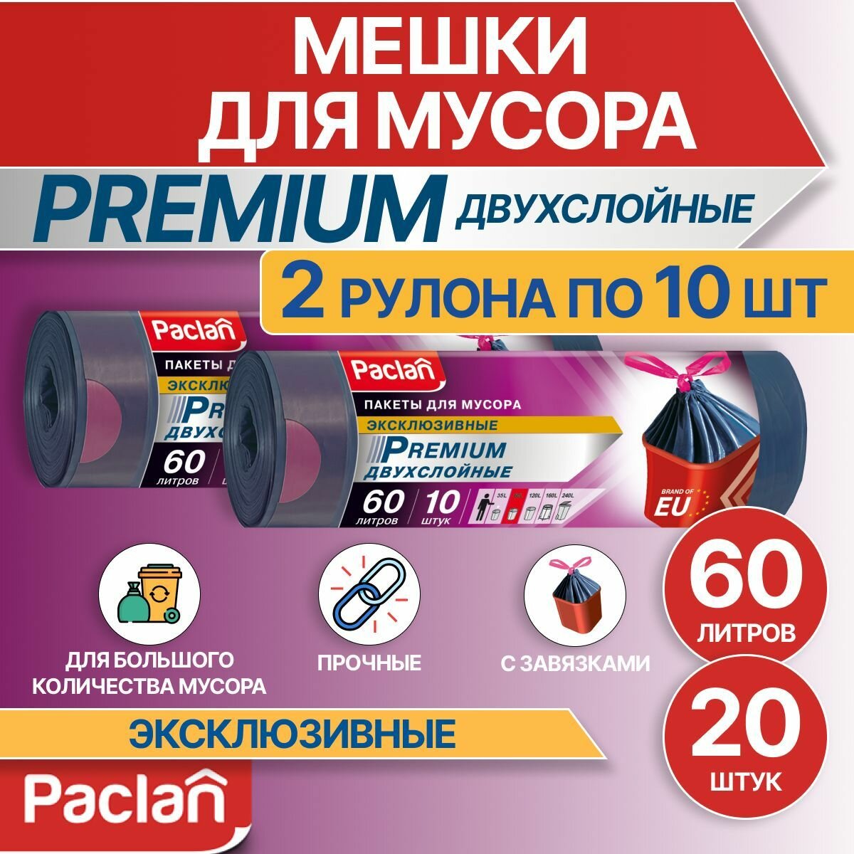 Мешки для мусора (мусорные пакеты)60 л, 2 рулона по 10 шт, серые, PREMIUM, Paclan интересное: