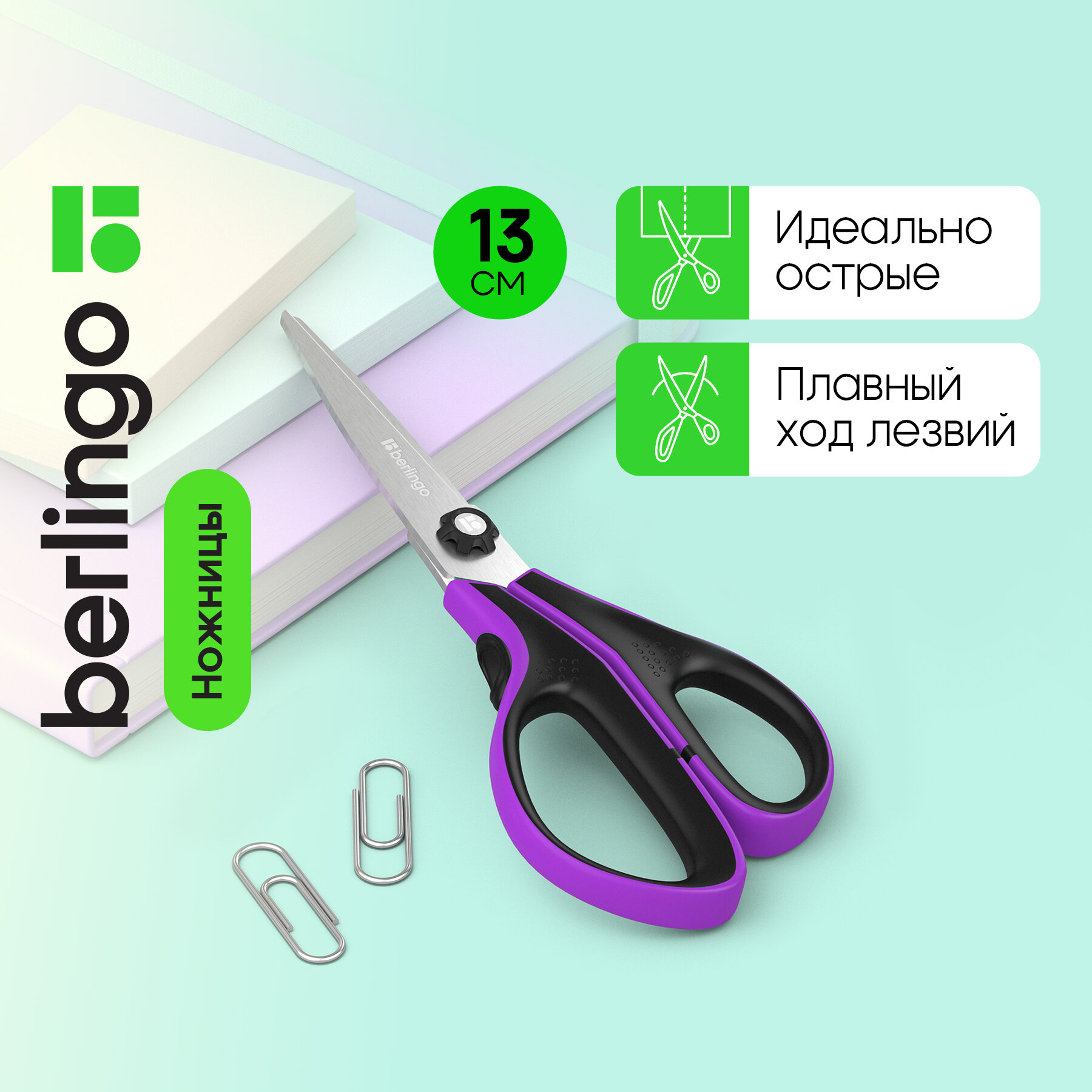 Ножницы Berlingo "Easycut 350", 13см, сиреневые, эргономичные ручки, мягкие вставки, европодвес, 1 шт