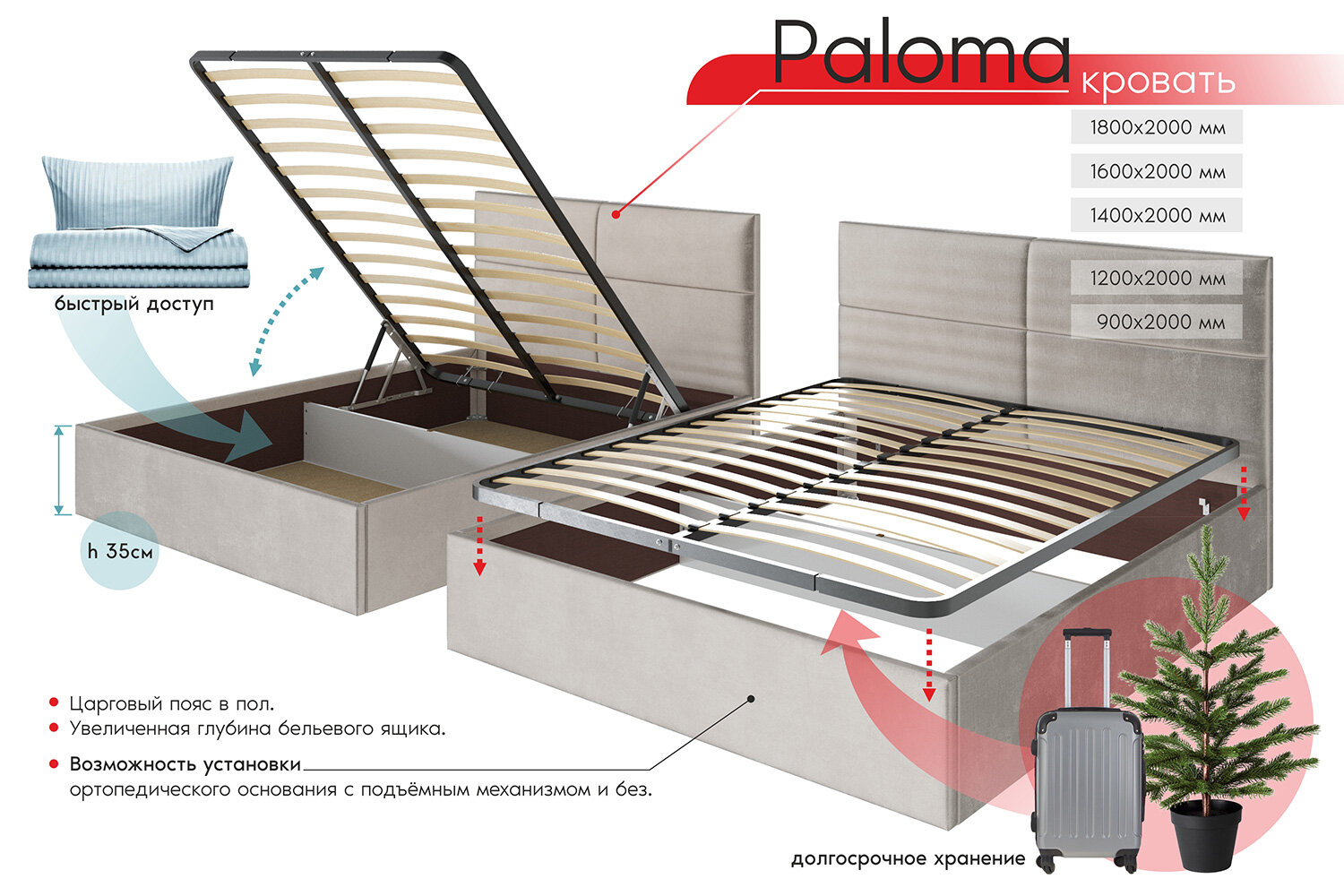 Каркас кровати Hoff Paloma, 160х200 см, цвет серо-бежевый, без основания и подъемного механизма интересное: