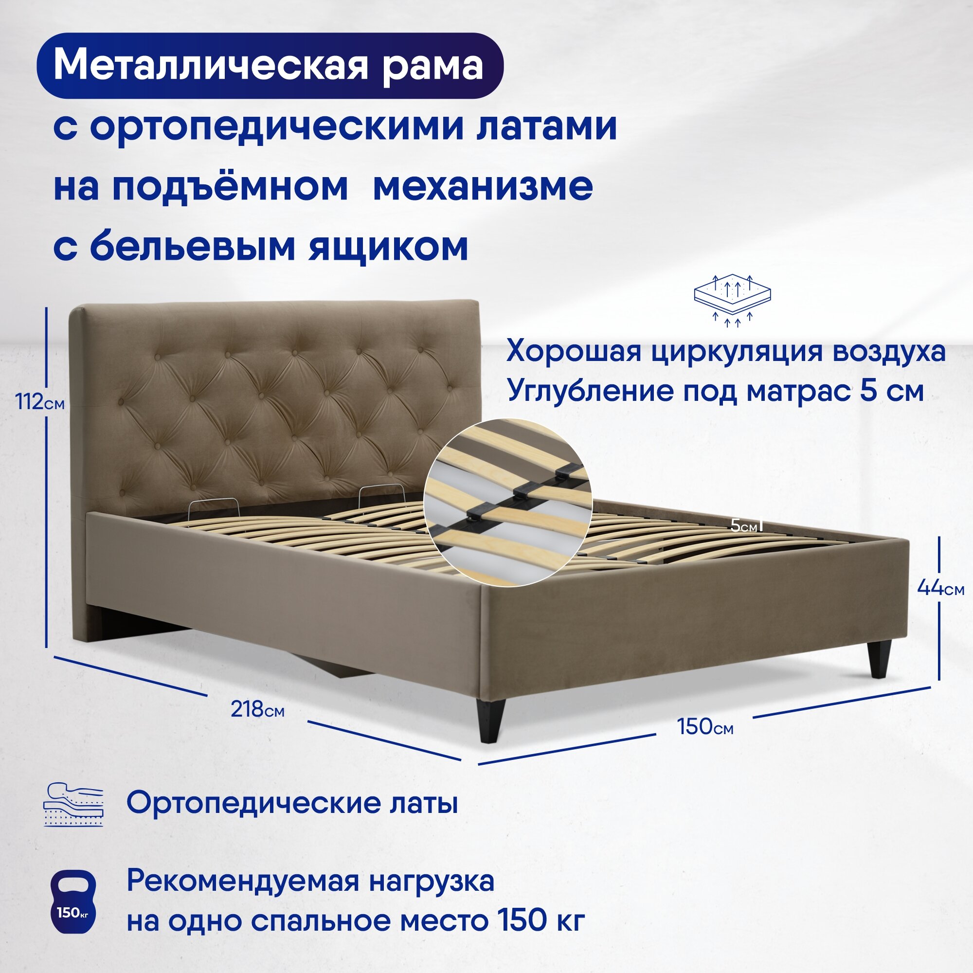 | Особенности | мягкое изголовье, с изножьем, с подъемным механизмом, с ящиком для белья |