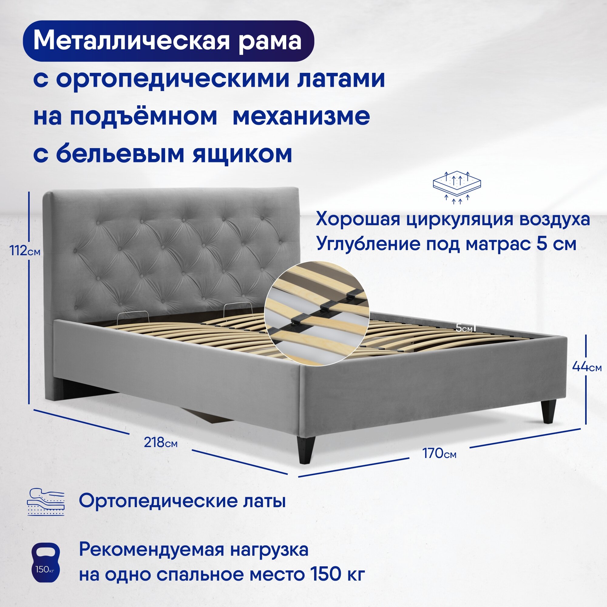 | Особенности | мягкое изголовье, с изножьем, с подъемным механизмом, с ящиком для белья |