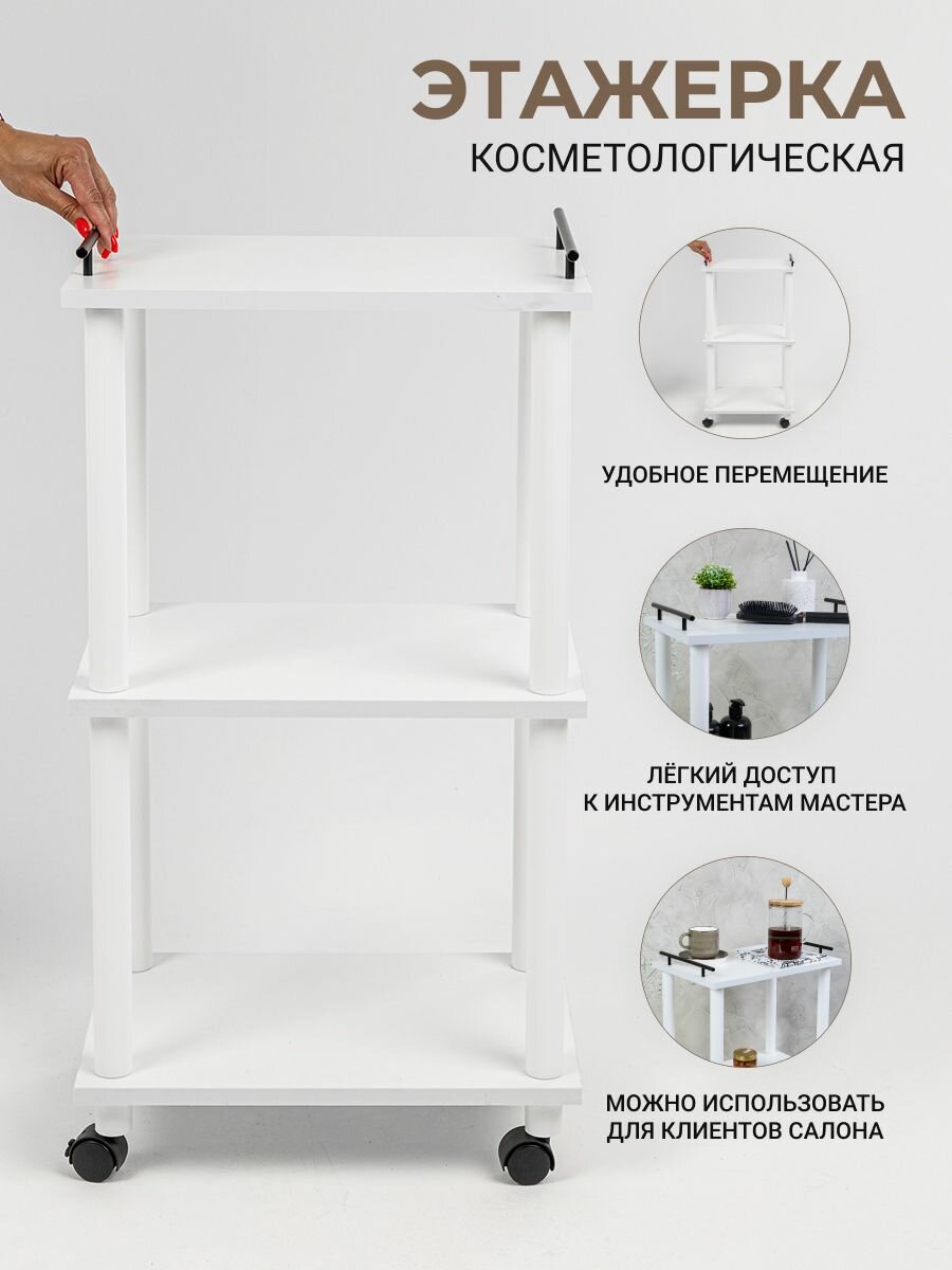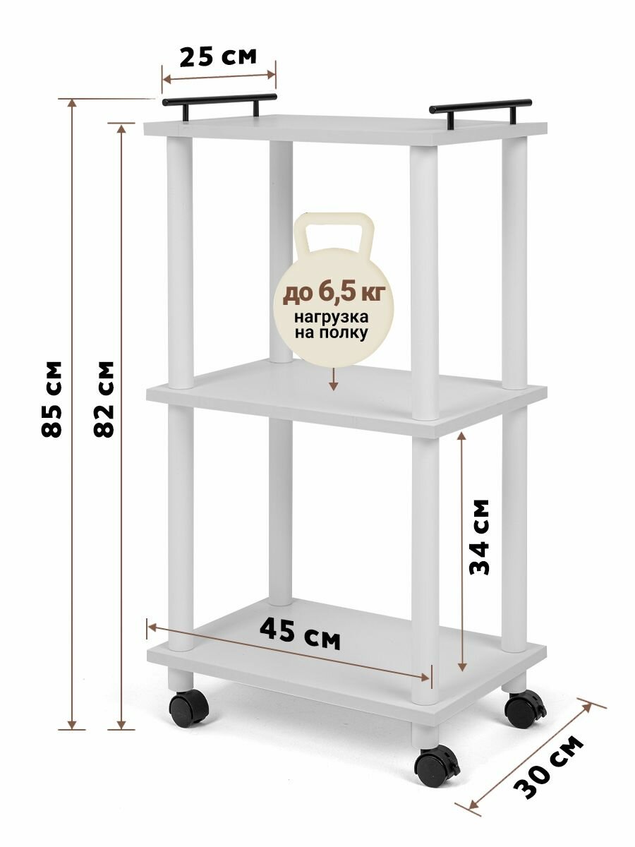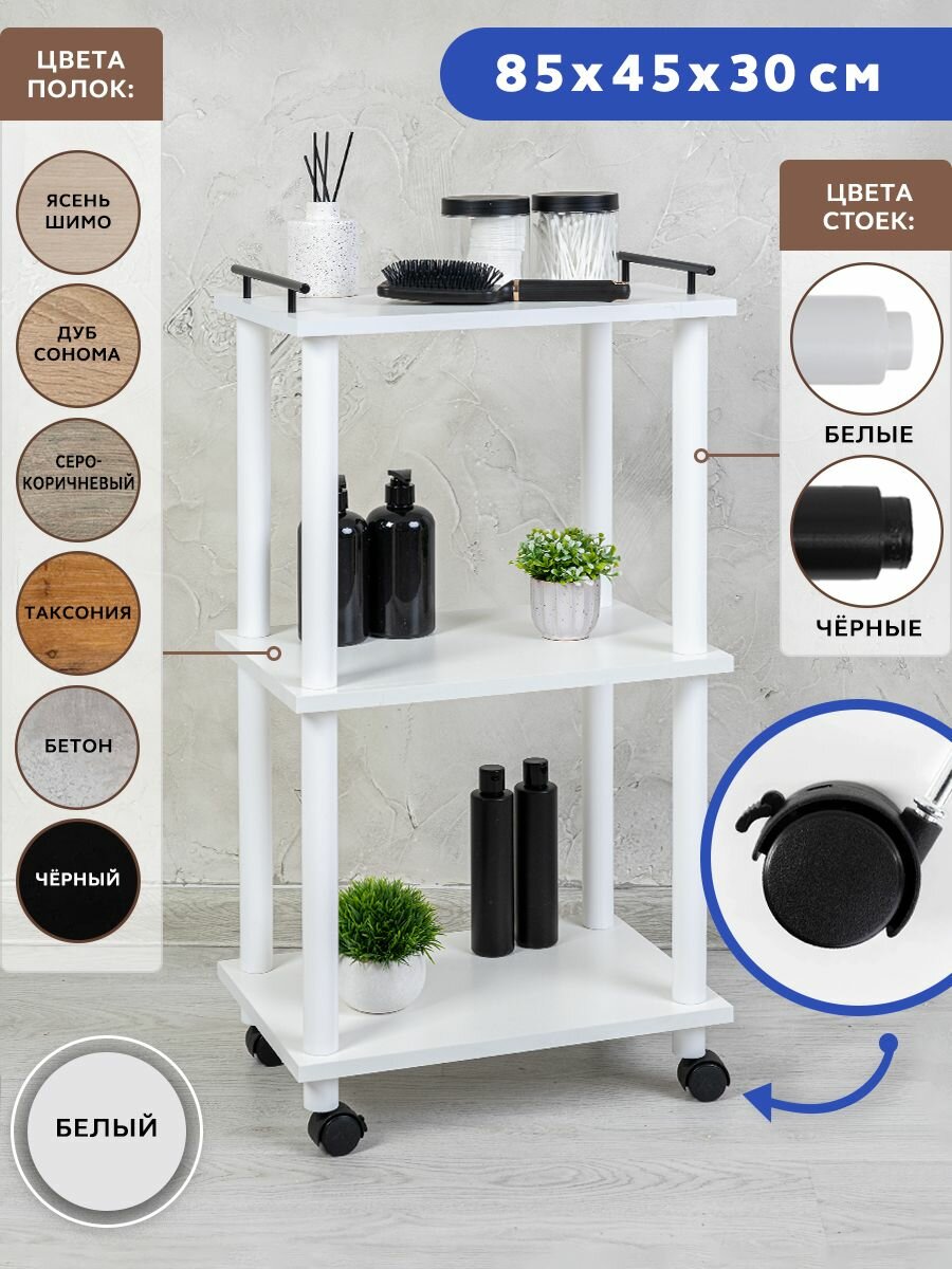 Стеллаж для кухни на колесах GASTRORAG 0770/3, этажерка для ванной на колесиках, тележка косметологическая, 3 полки ЛДСП, размеры 45 х 30 х 82 см