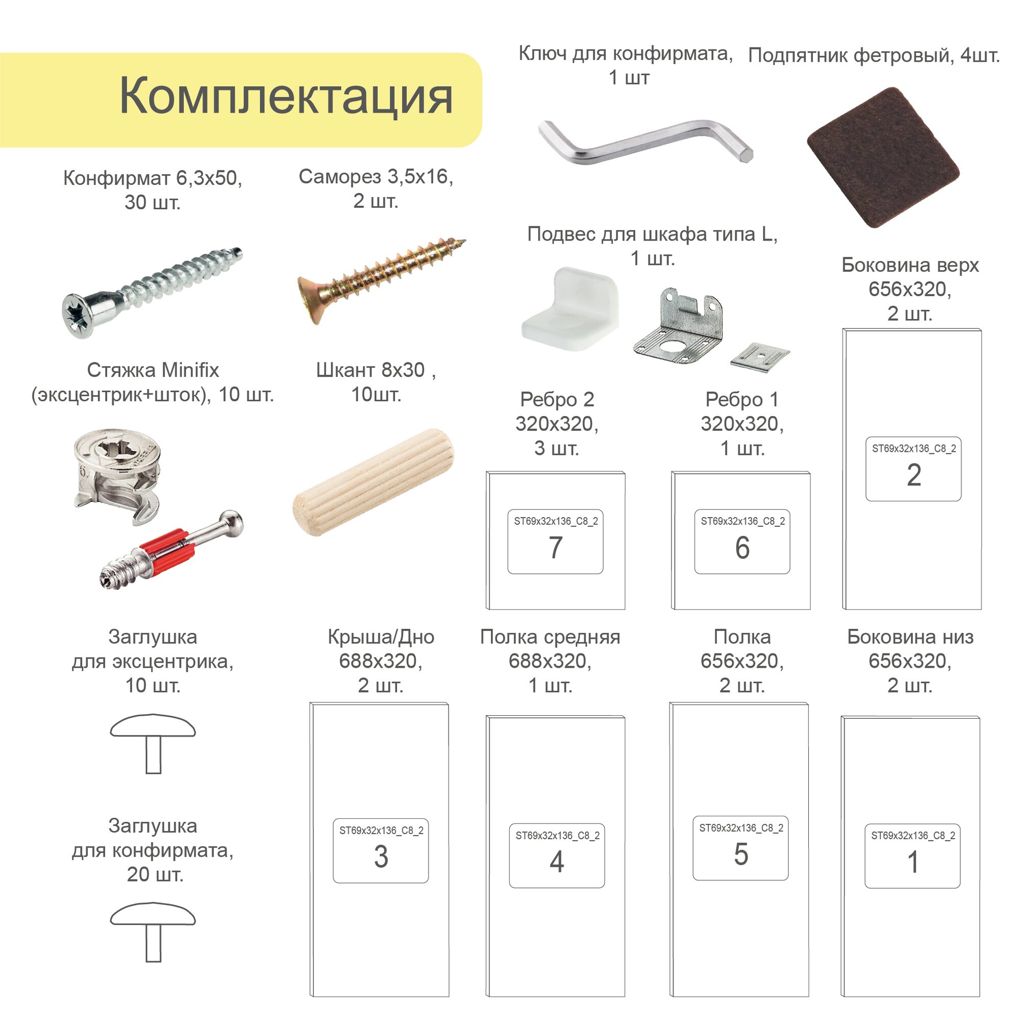 | Комплектация | в комплектацию входит: детали, комплект фурнитуры и инструкция по сборке. |