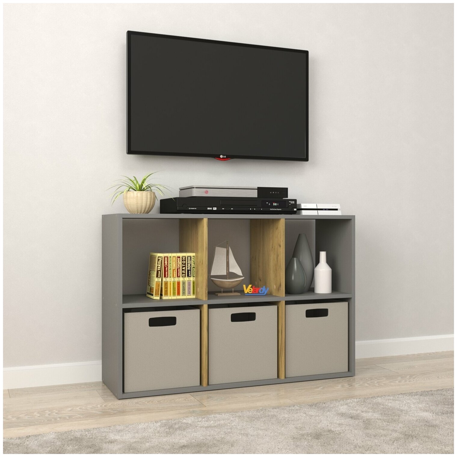 Стеллаж Velardy кубикус, 69x35x32см, серый