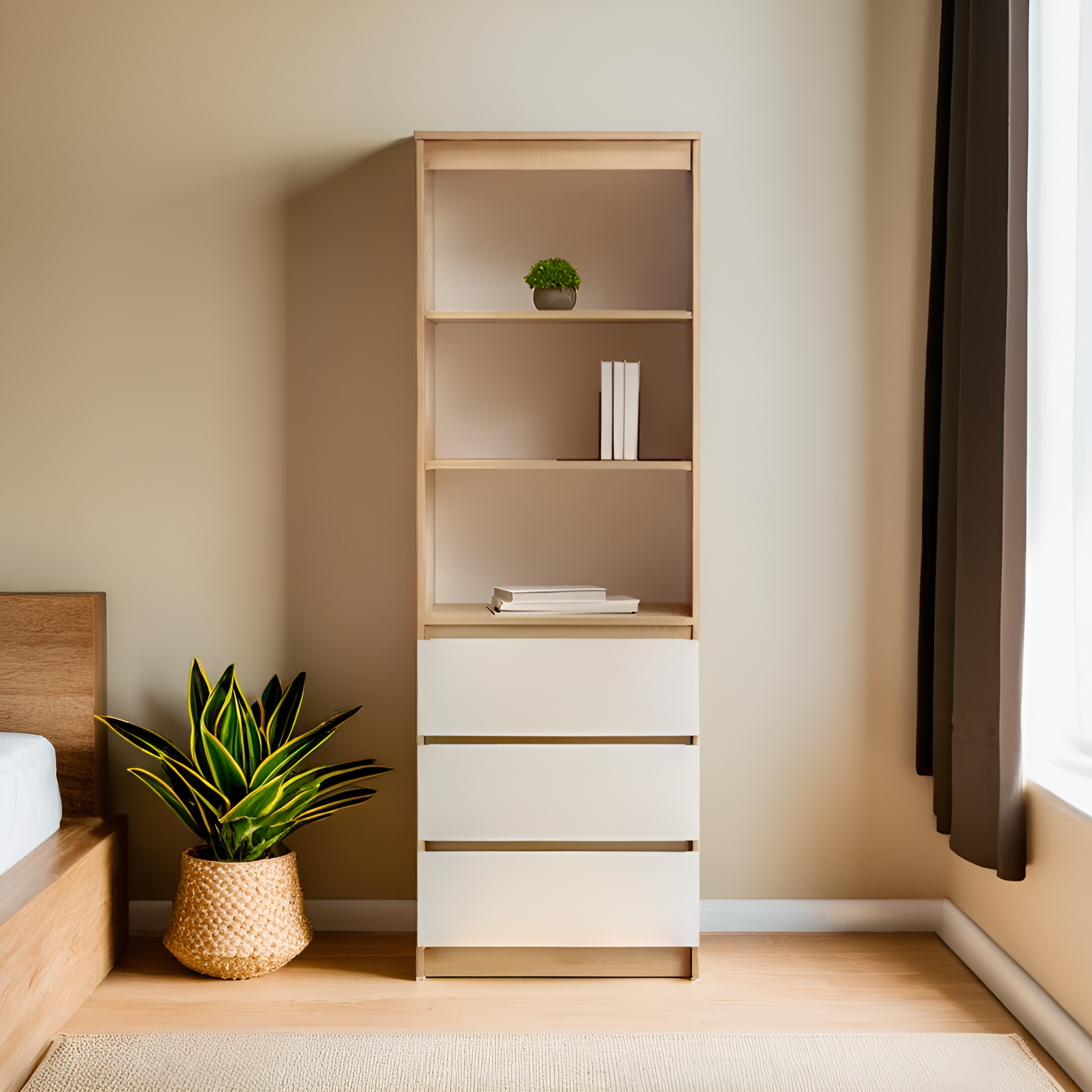 Стеллаж Челси 179*60*38 см, 3 выдвижных ящика из ЛДСП, Белый глянец/Белый