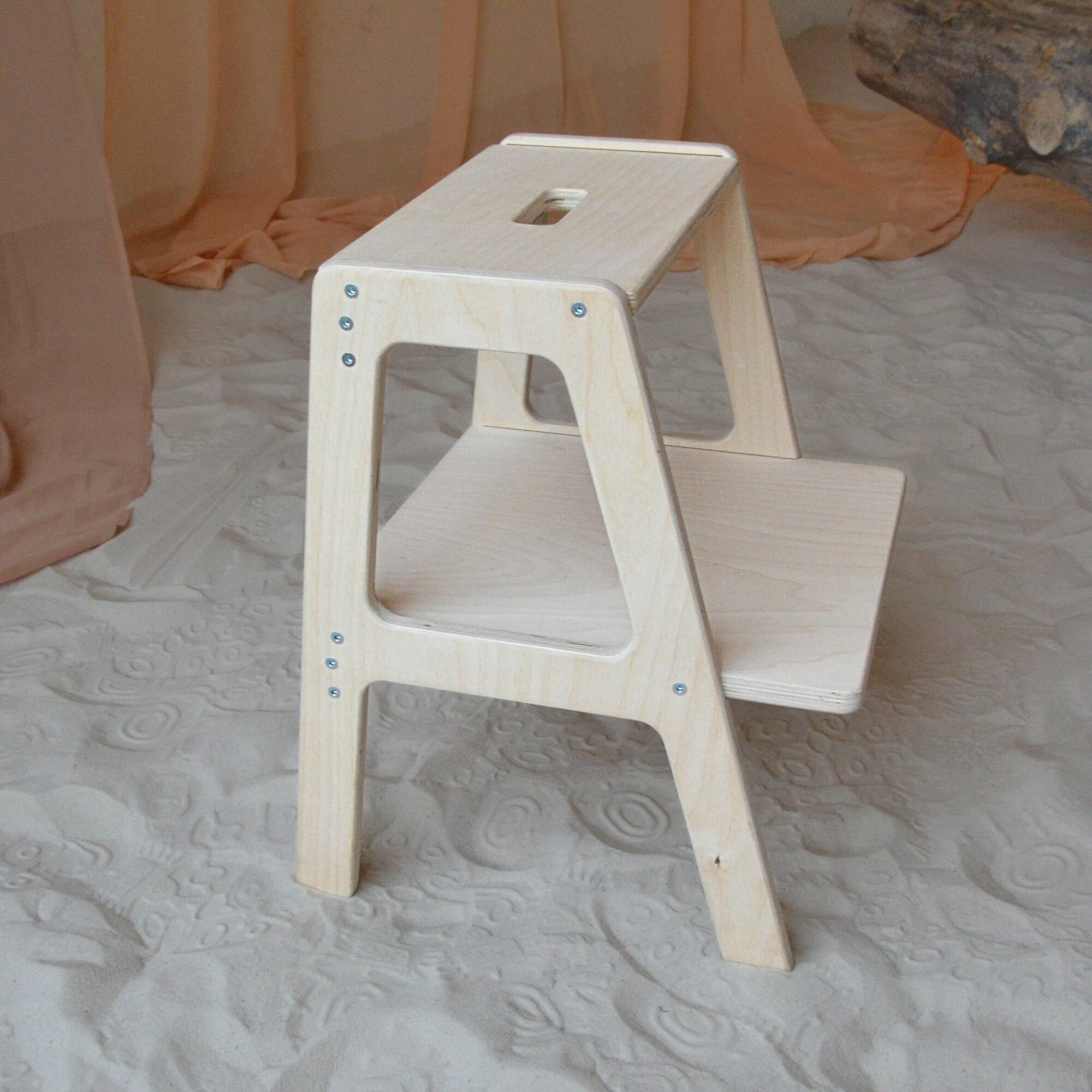 Деревянный табурет-стремянка для дома и дачи, шлифованный