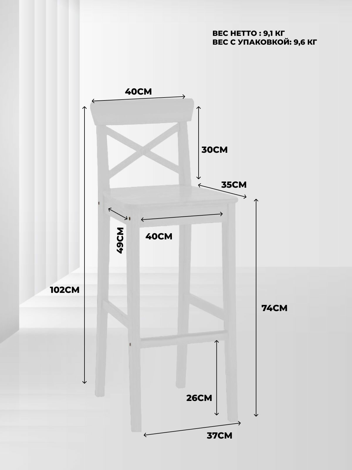 Стул барный ингольф с высотой сидения 74 см из массива сосны коричневый для кухни, дачи, гостиной, бара
