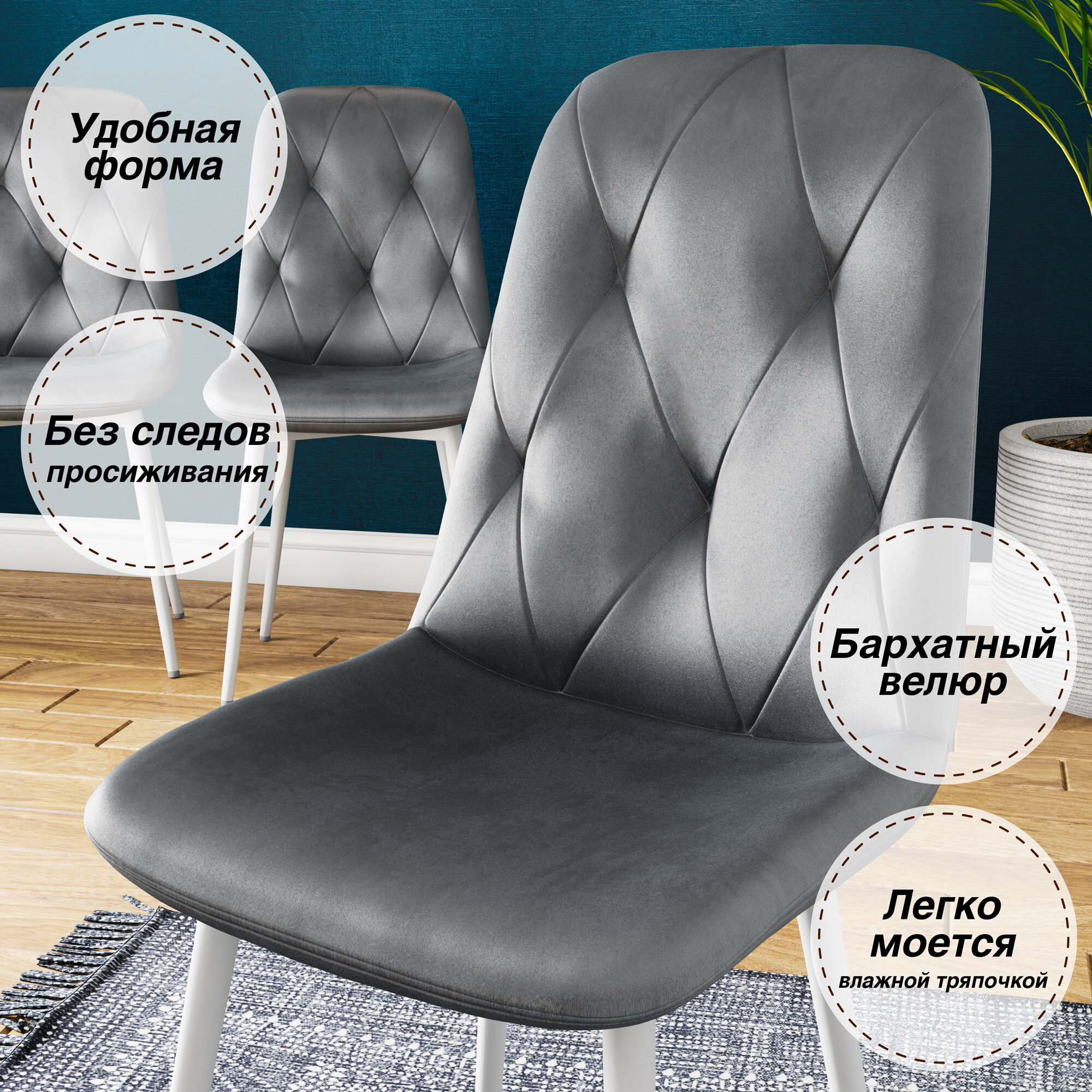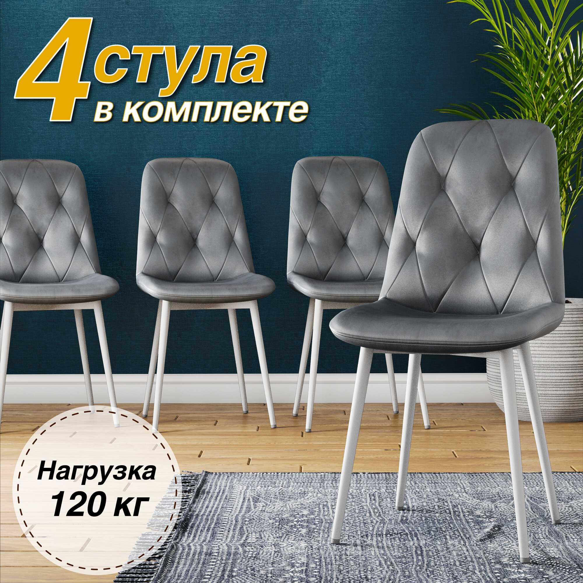 Купить Комплект (4 шт) мягких стульев для кухни, кабинета DC-2103 велюр, серый, на белом каркасе