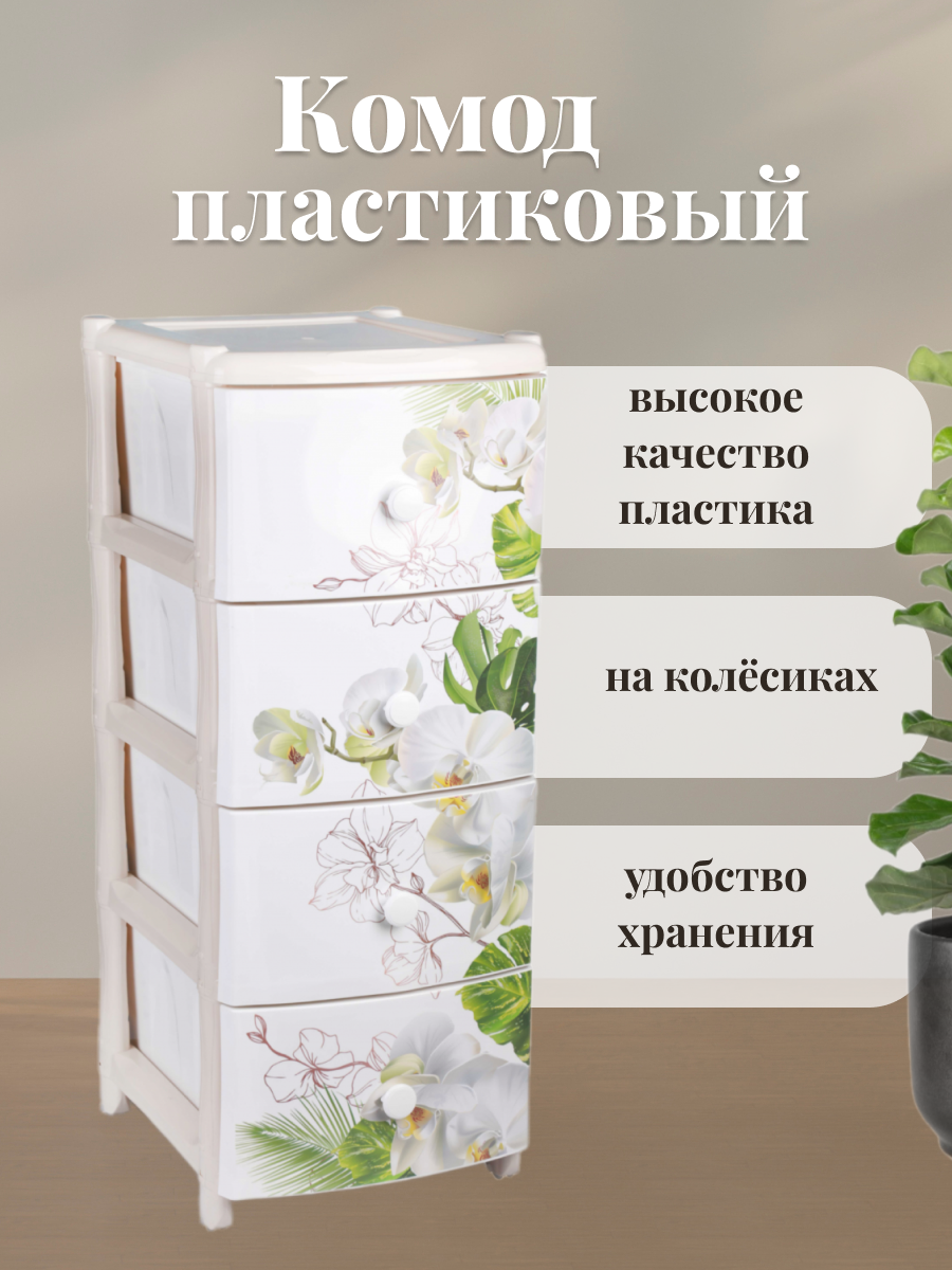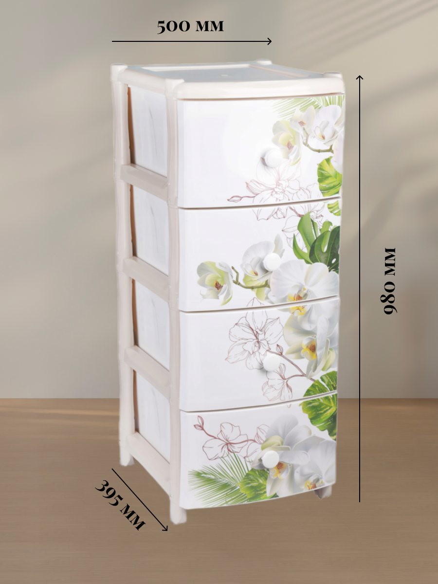 Комод четырехсекционный "Орхидея" 91х56х42см, пластиковый