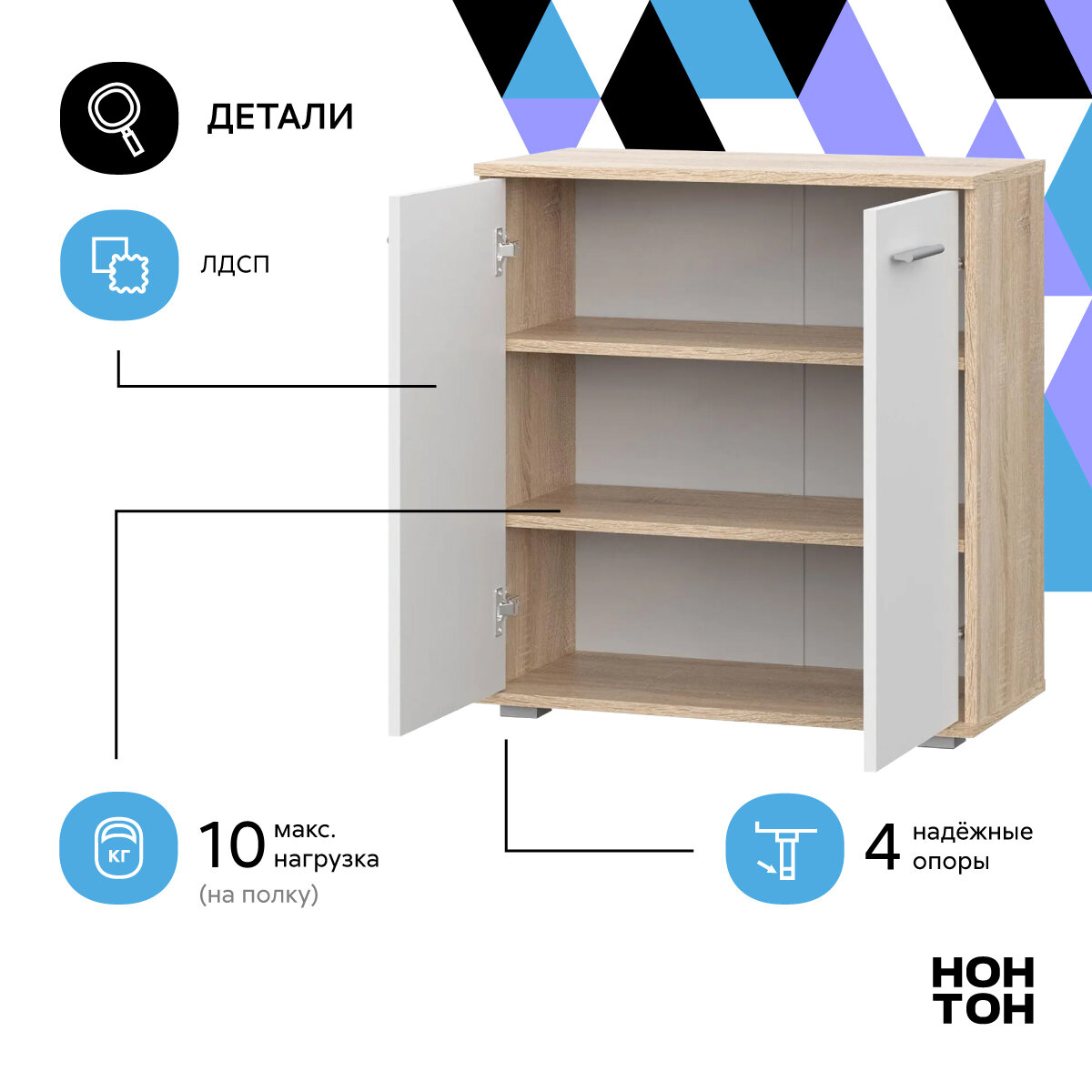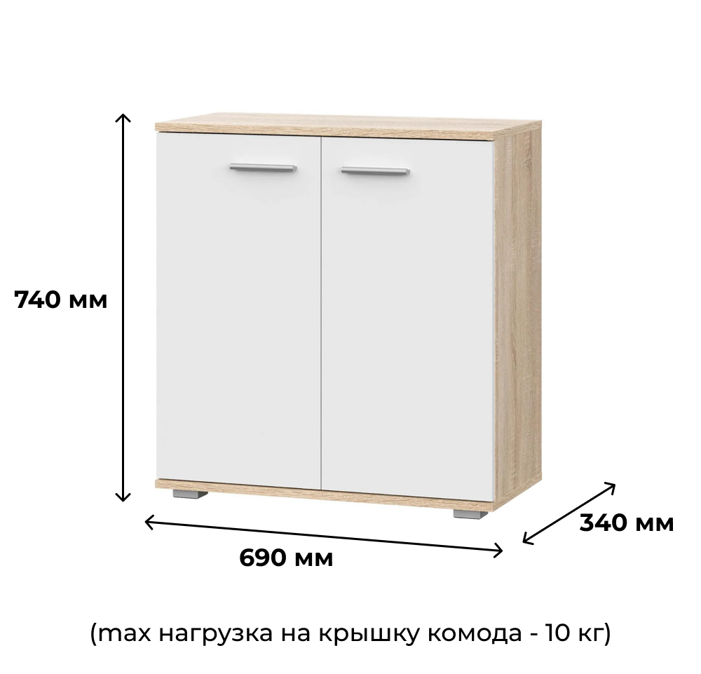 Комод FUN КД 1, комод деревянный с распашными дверцами, Белый, 690x340x735мм (ШхГхВ)