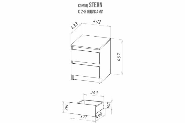 STERN Т-1, прикроватная тумба, 40х49,7х43,3 см, 2 ящика, белый