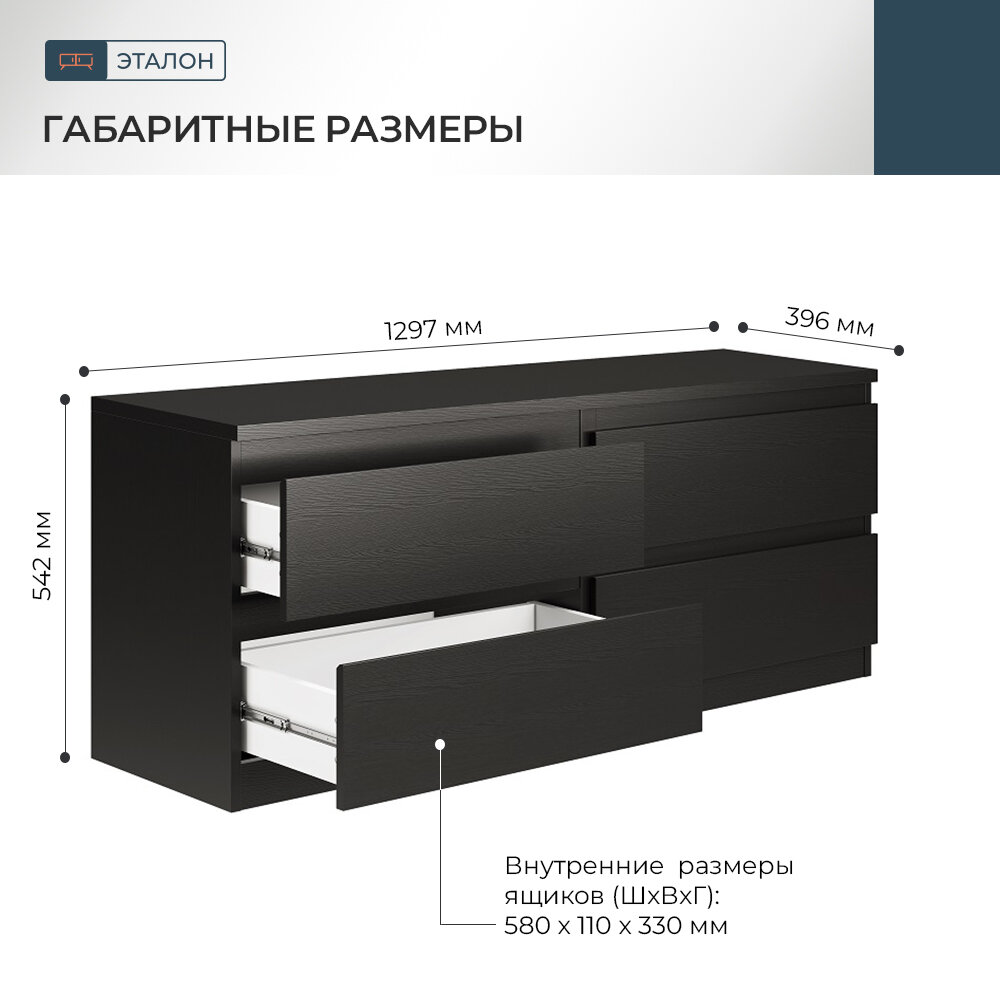 Тумба для ТВ ГУД ЛАКК Кастор, 4 ящика, 129.7 х 39.6 х 54.2 см, черная, дуб венге