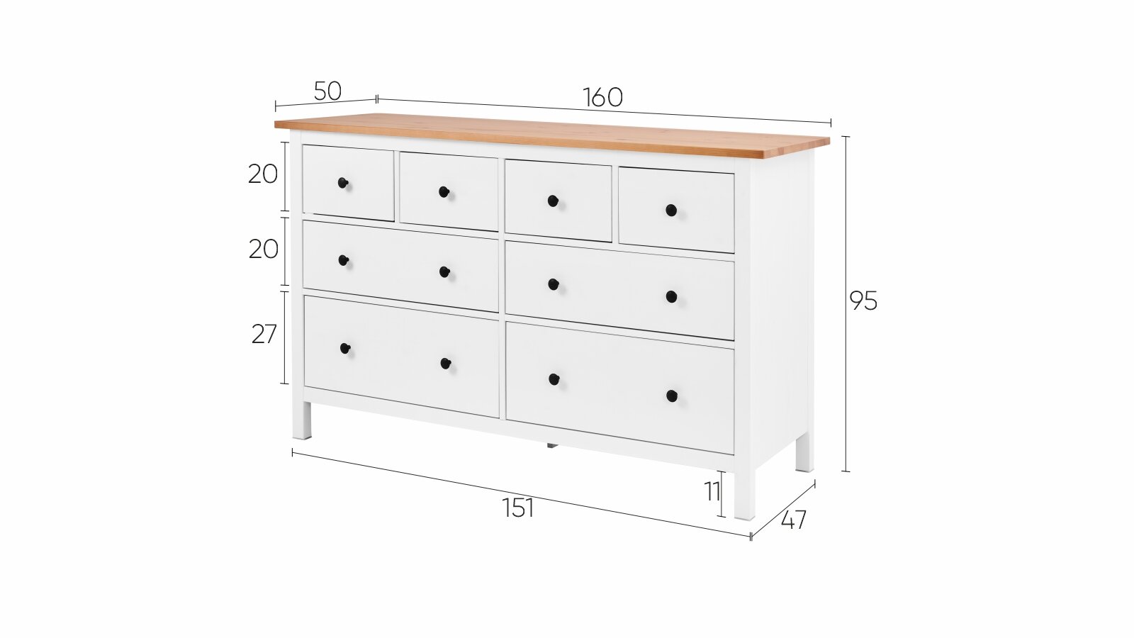 Комод 8 ящиков Лузалес/Икеа белый 160*50*96 белый/полупрозрачный, массив сосны