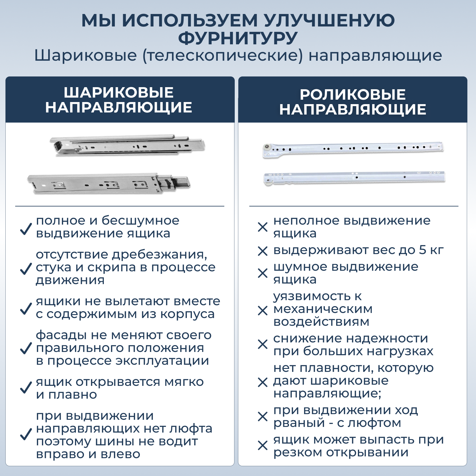 | Комплектация | Шкаф, ящики, полки, штанга, фурнитура, инструкция по сборке, упаковка |