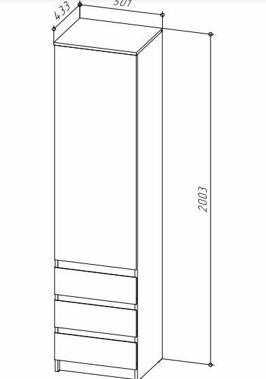 Шкаф-пенал STERN ШКЯ-1, Белый, 50,1х200,3х43,3 см