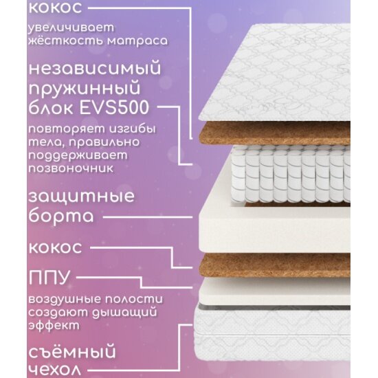 Матрас Капризун "Дрим Хард", независимые пружины, ортопедический, 190x80х14см