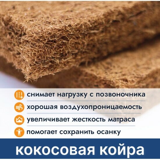 | Наполнитель | кокосовая койра / комбинированный / латекс / Пенополиуретан (ППУ) / спанбонд / термовойлок / холкон |