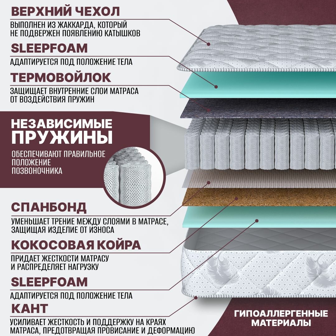Матрас анатомический Cosmic Comet, 165х200, 20 см, с независимыми пружинами, для кровати, средней жесткости