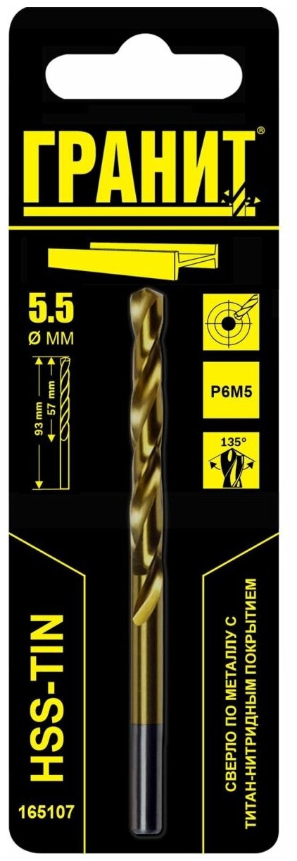 Сверло по металлу Гранит HSS-Tin d 5,5 мм 93 мм 165107 интересное: