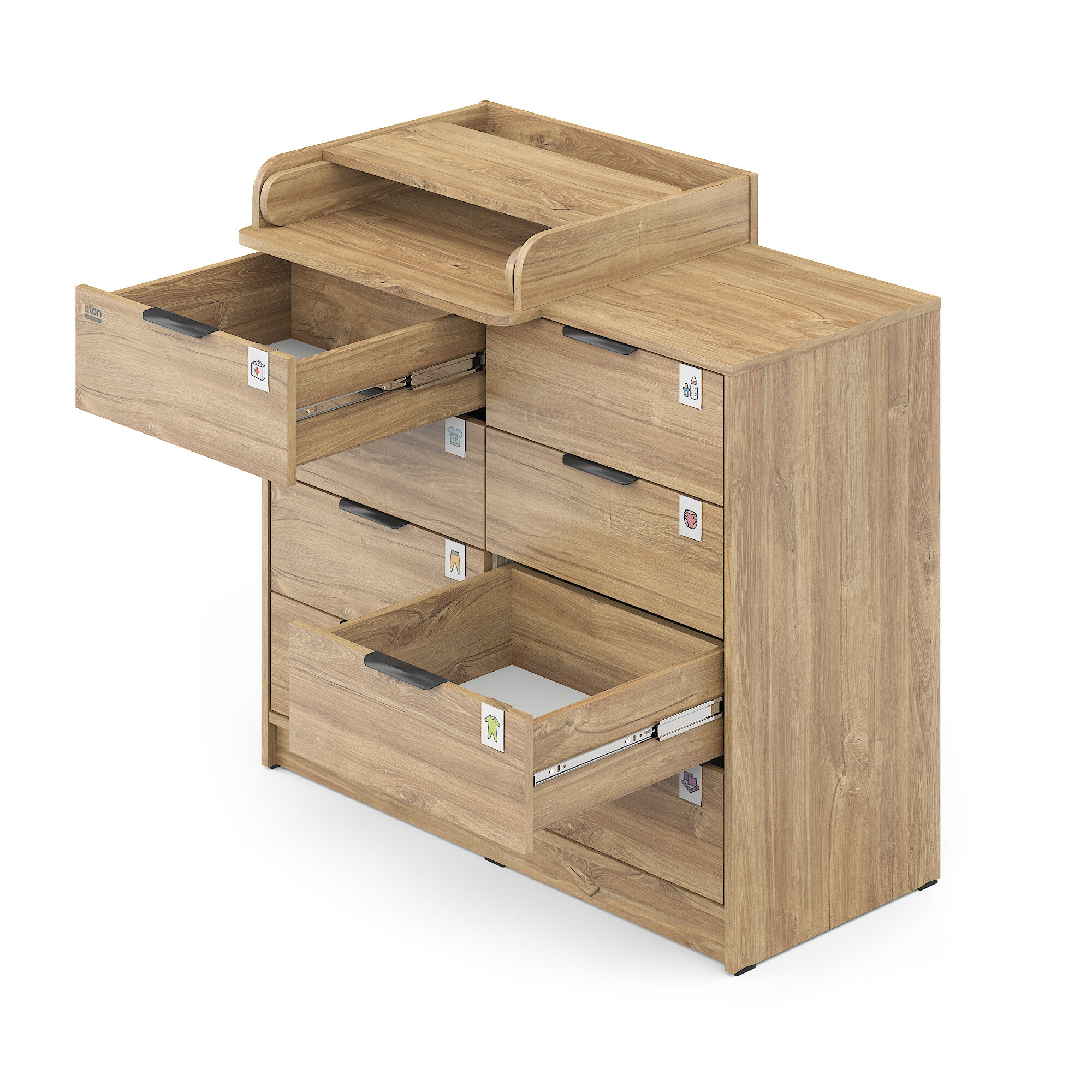 Комод пеленальный aton LEO, 5 ящиков с органайзером, дуб сонома