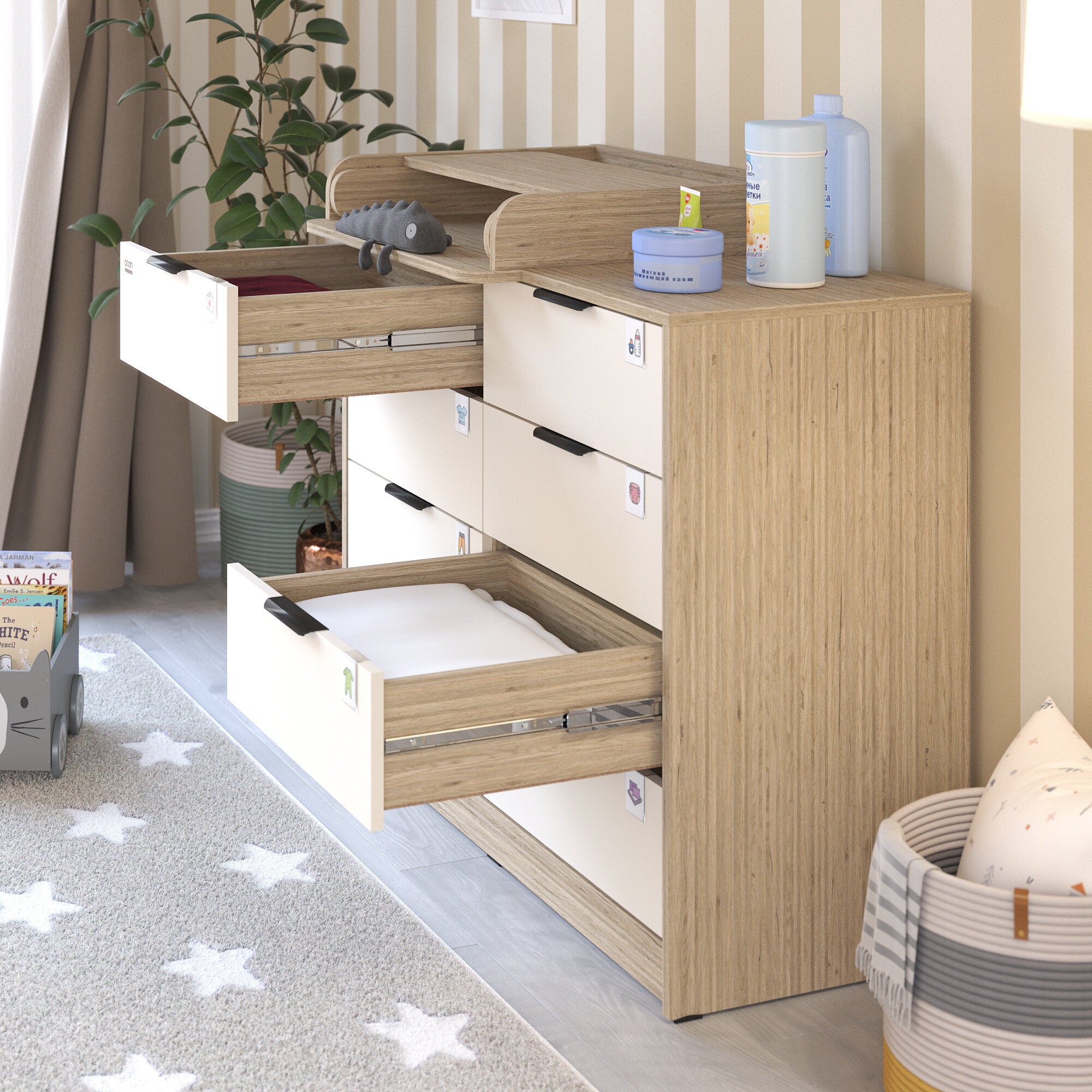 Комод пеленальный aton LEO, 5 ящиков с органайзером, дуб сонома