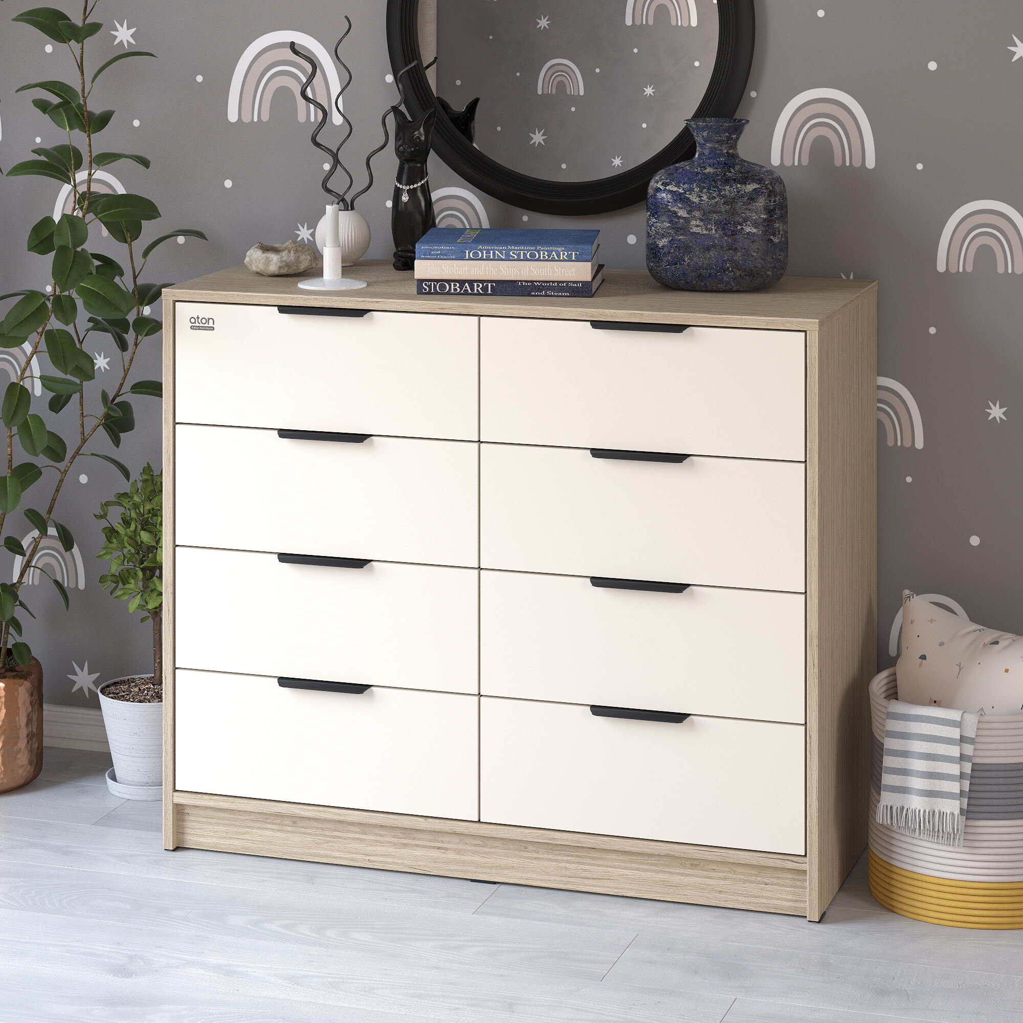 Купить Атон комод "Zeus" шариковые направляющие 8 ящ.Дуб тонсберг/фарфор