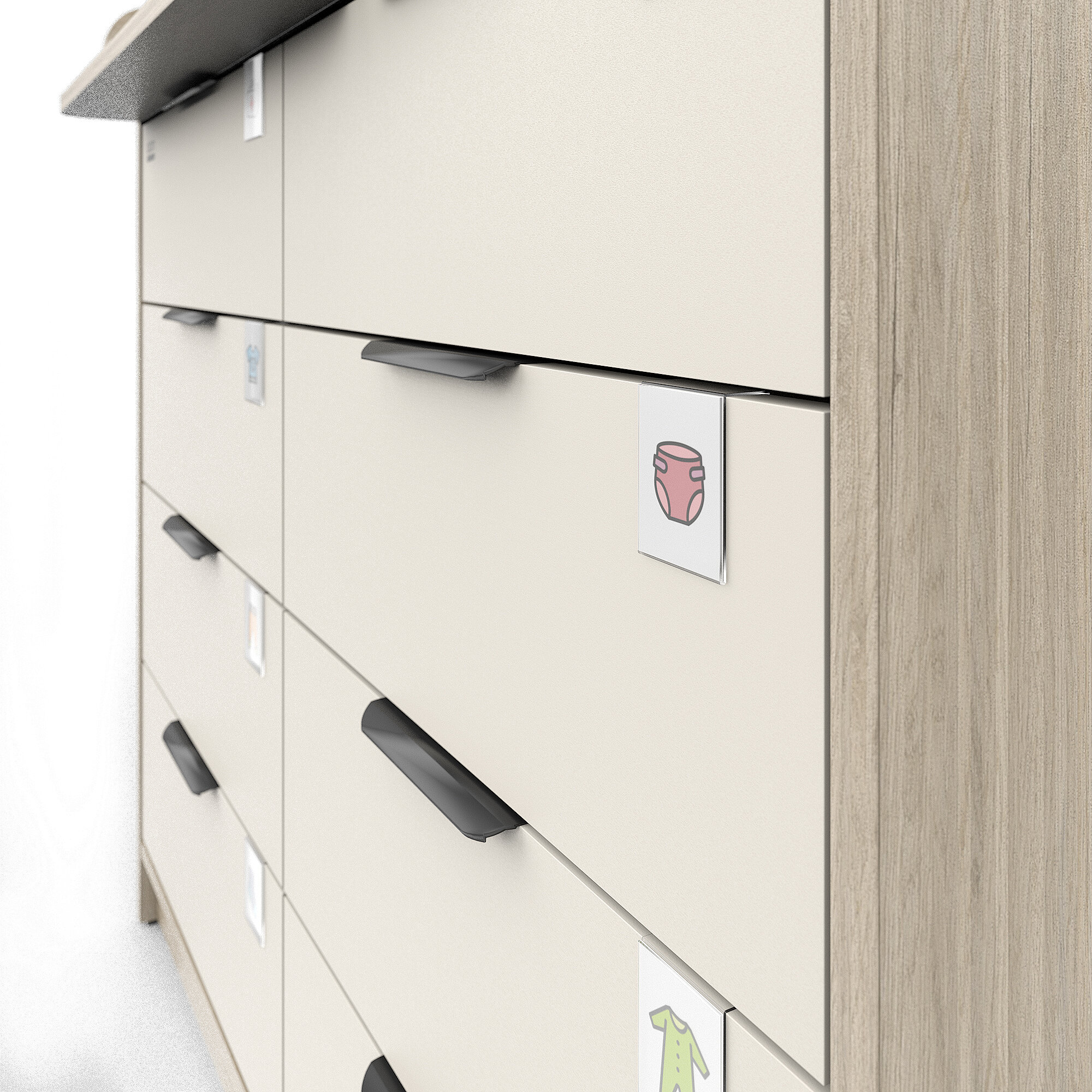пеленальный Maks (5 ящиков) Древесина белая/Серый