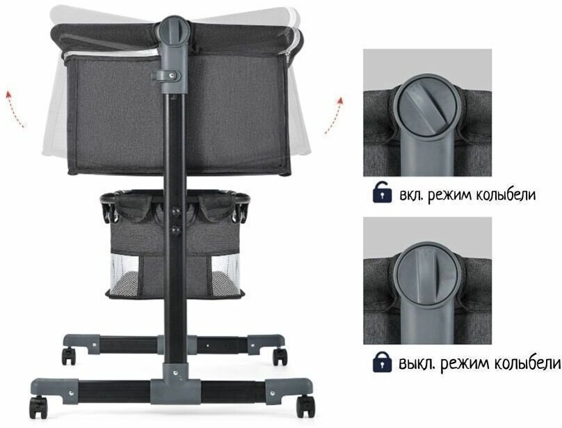 | Комплектация | корзинка для вещей; москитный козырек; матрас; регулируемые колёсики; детская приставная кровать; сумка для переноски |