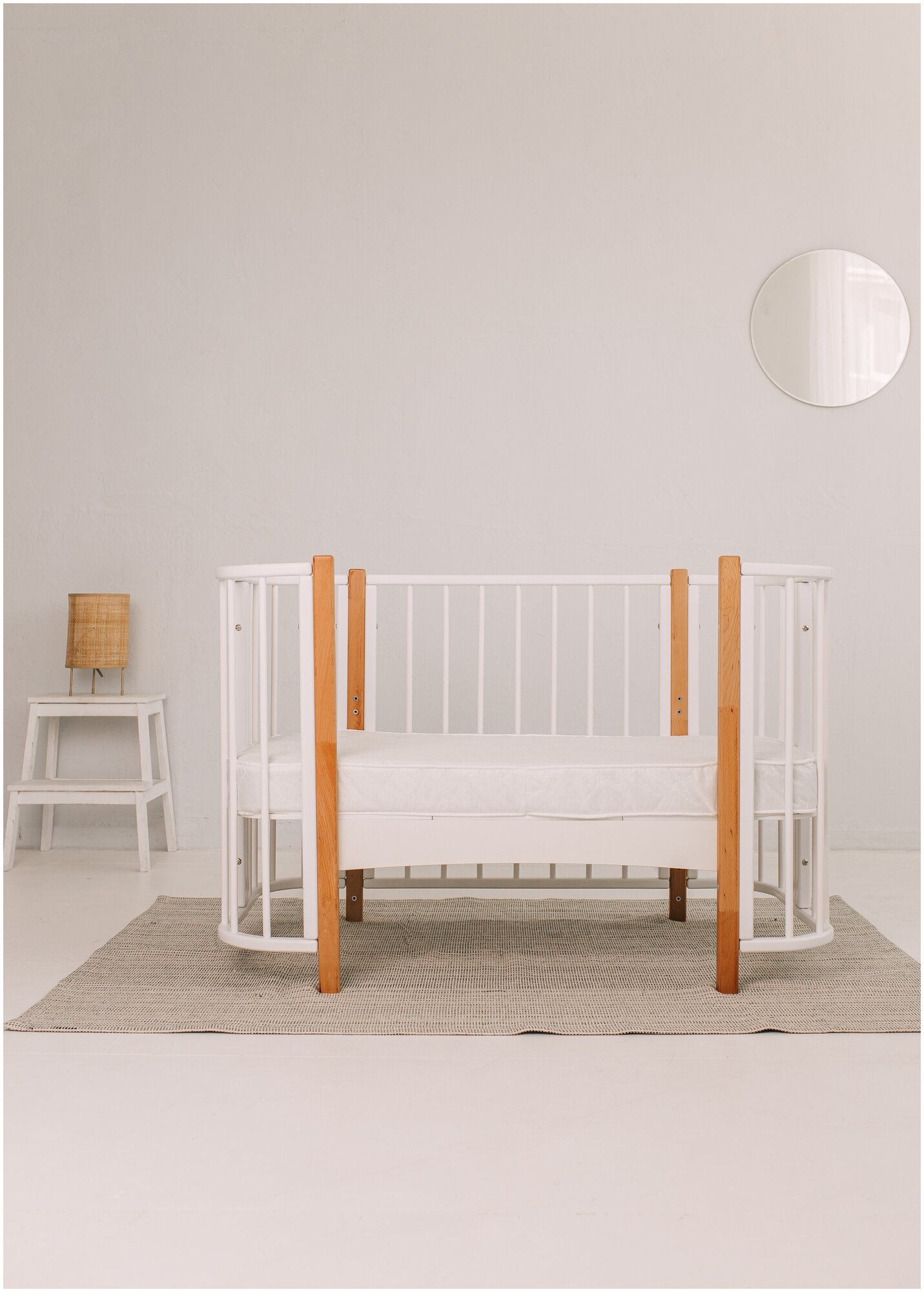 | Комплектация | колесики / комплект из 2х матрасов / маятник / бортик облачко |