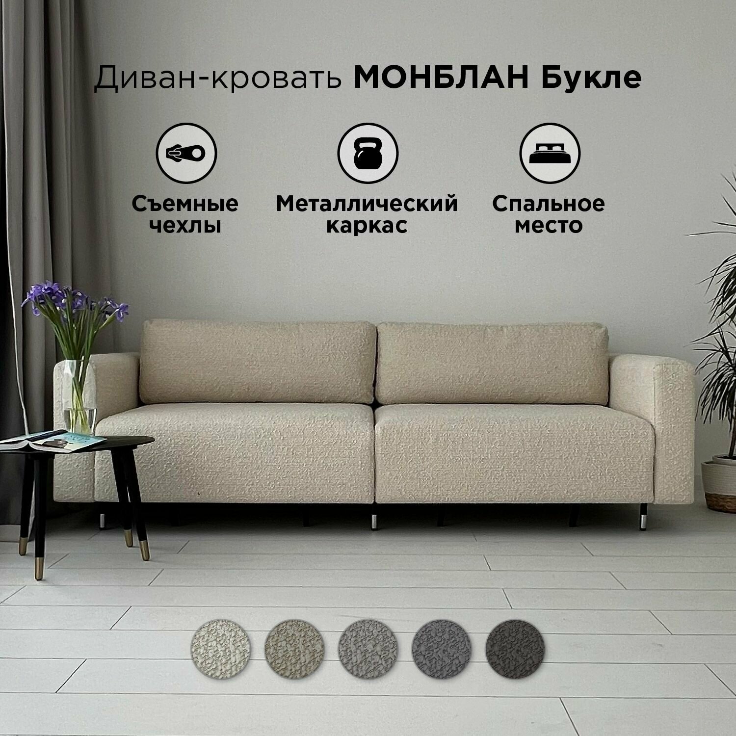 Диван-кровать Redsofa Монблан Букле белый. Раскладной прямой диван со съемными чехлами Редсофа, для дома и офиса (Мебельный гарнитур бытового назначения)