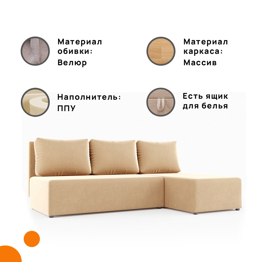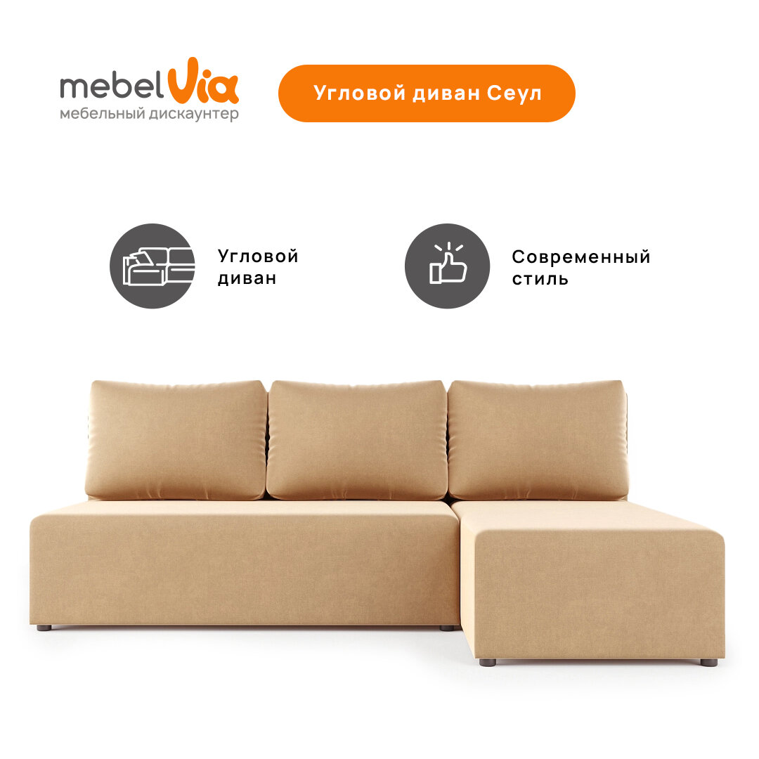 Угловой Диван Сеул MebelVia Бежевый, микровелюр, еврокнижка интересное: