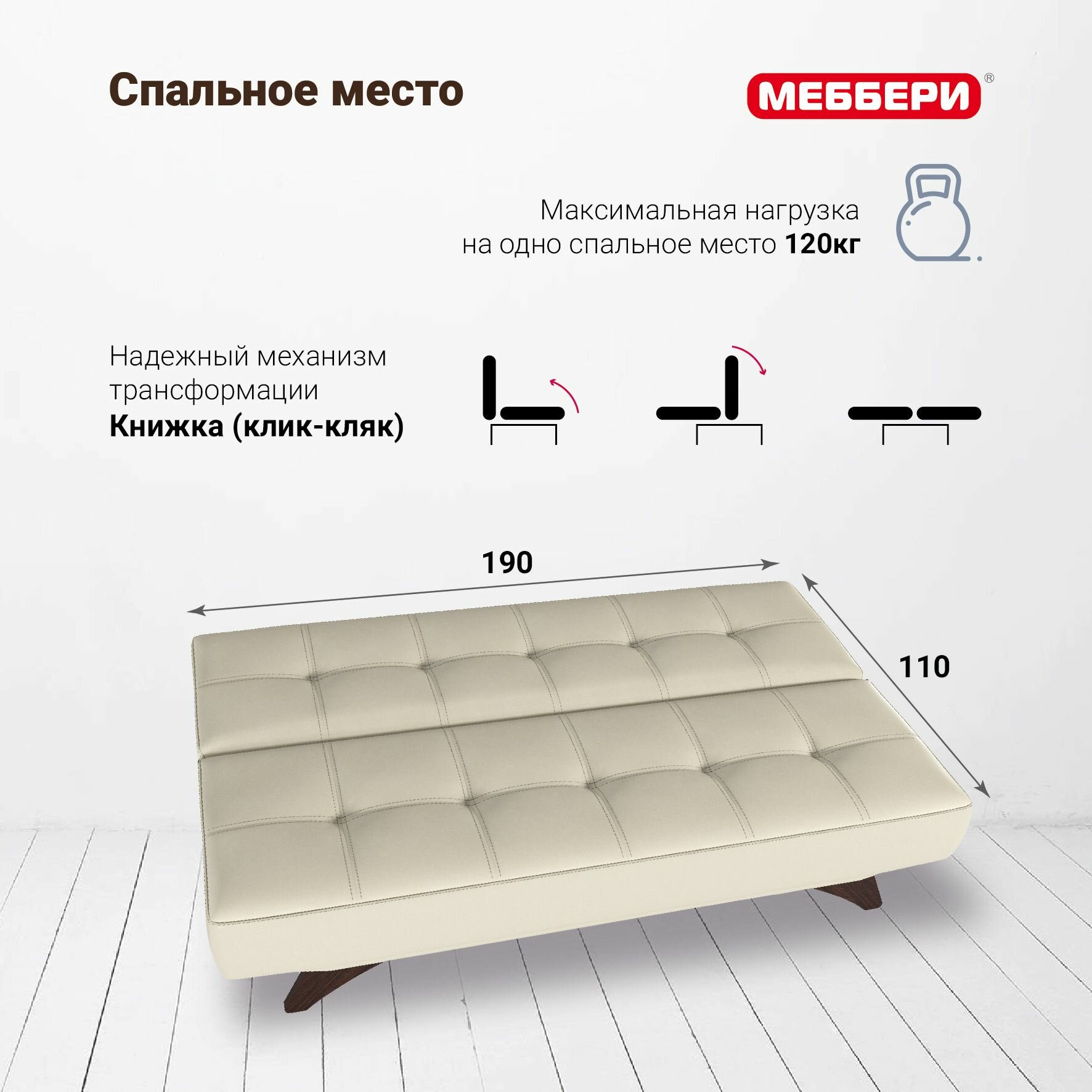 Купить Диван-кровать Эрик на кухню, клик-кляк книжка, экокожа, молочный, раскладной в гостиную