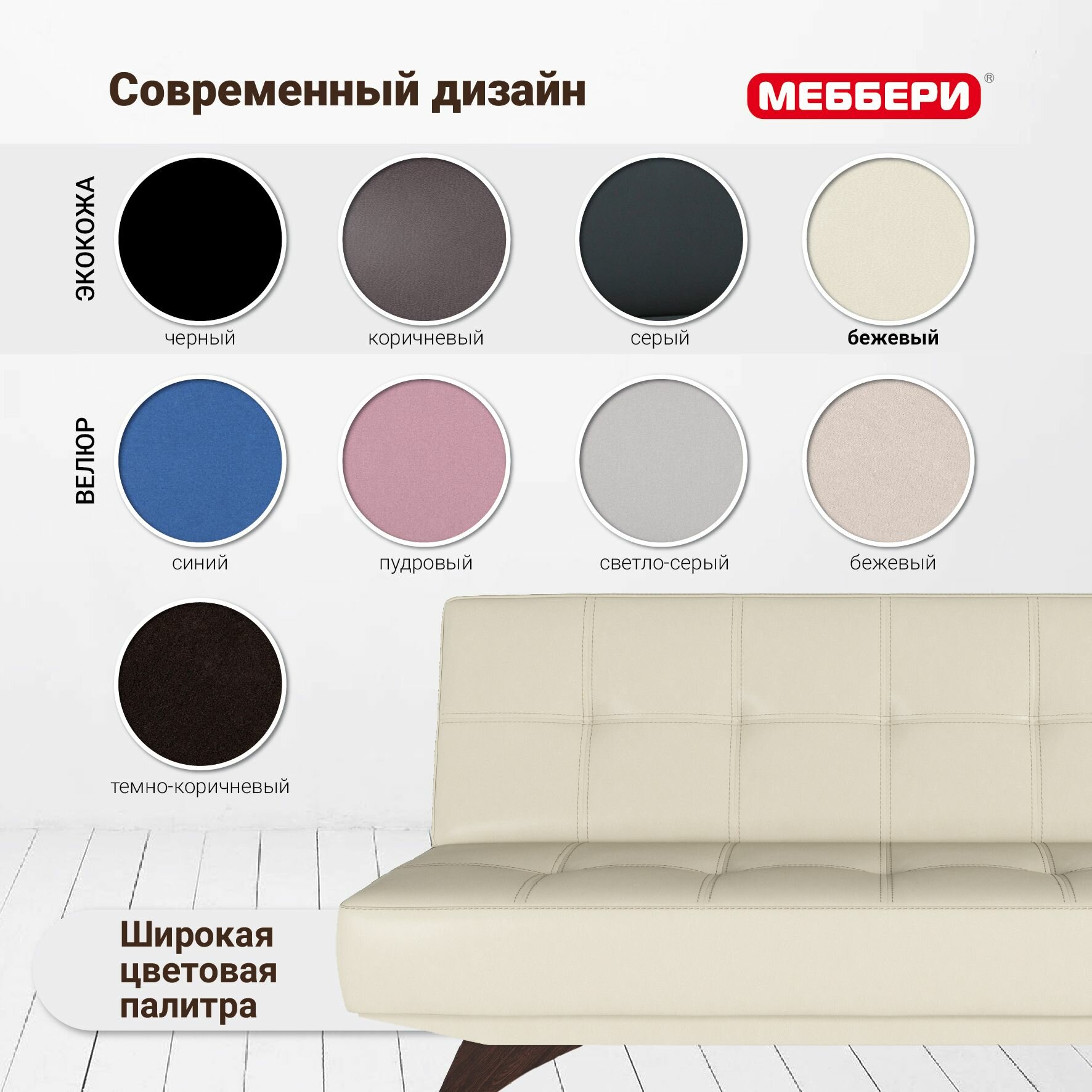 Диван-кровать Эрик на кухню, клик-кляк книжка, микровелюр, бежевый, раскладной в гостиную