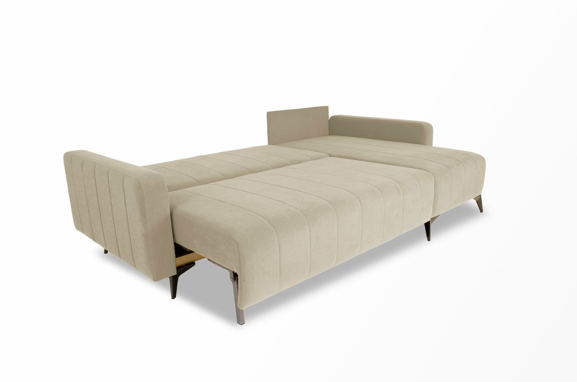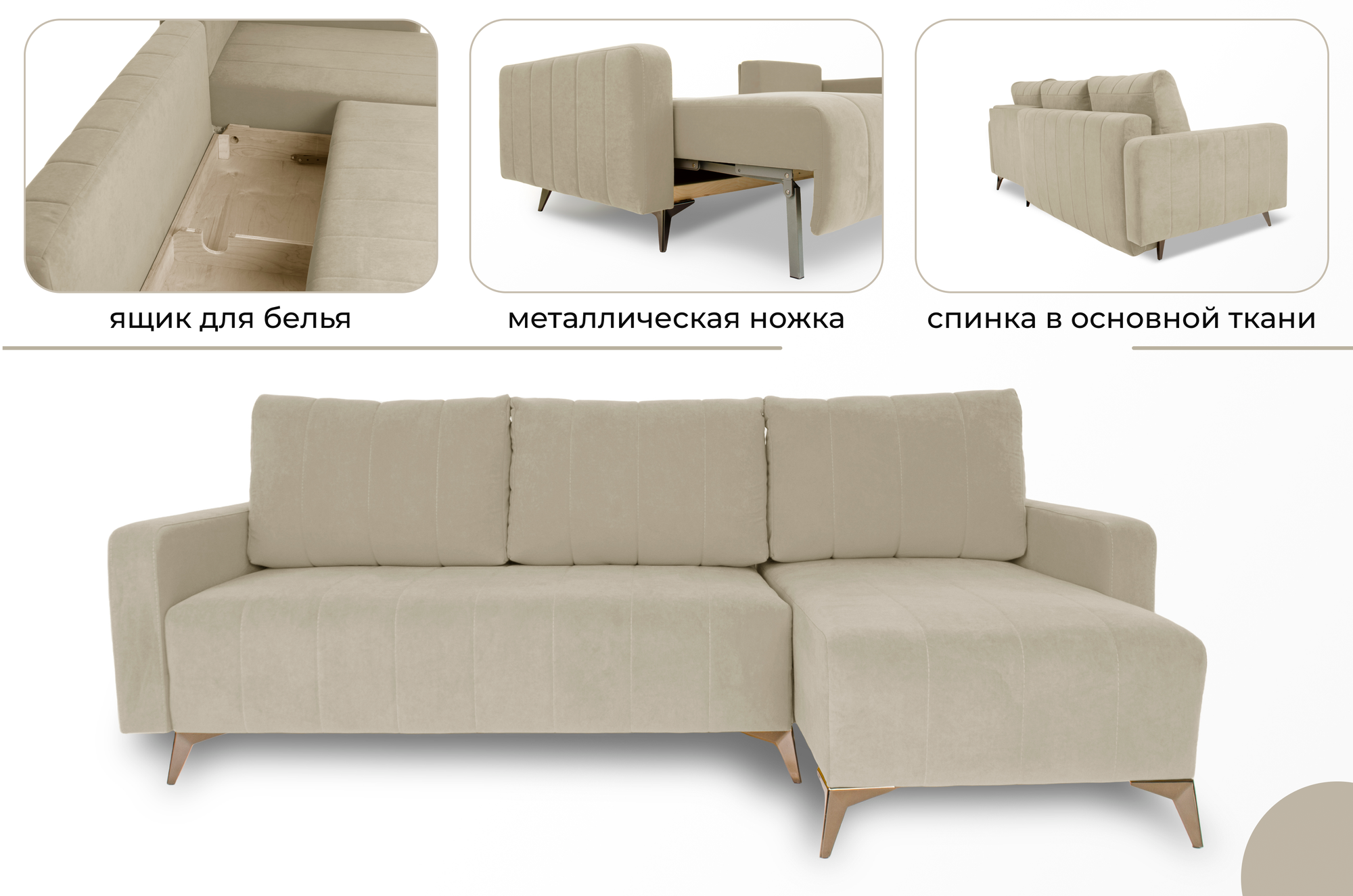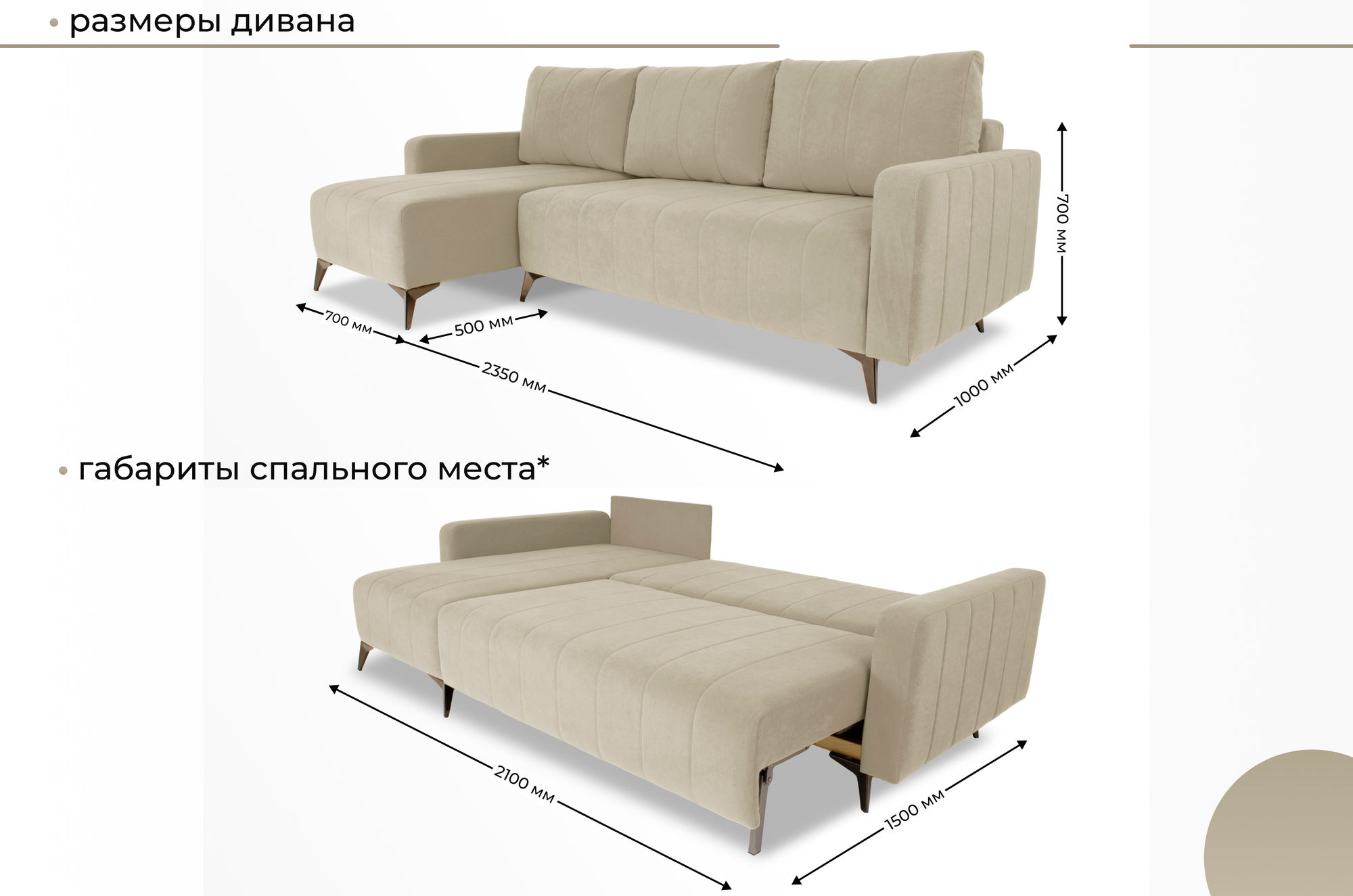 СохранитьРаскладной двуспальный угловой диван кровать Лофт Вилсон 235х100см с шагающим механизмом пантограф на ножках для гостиной и спальни бежевый интересное:
