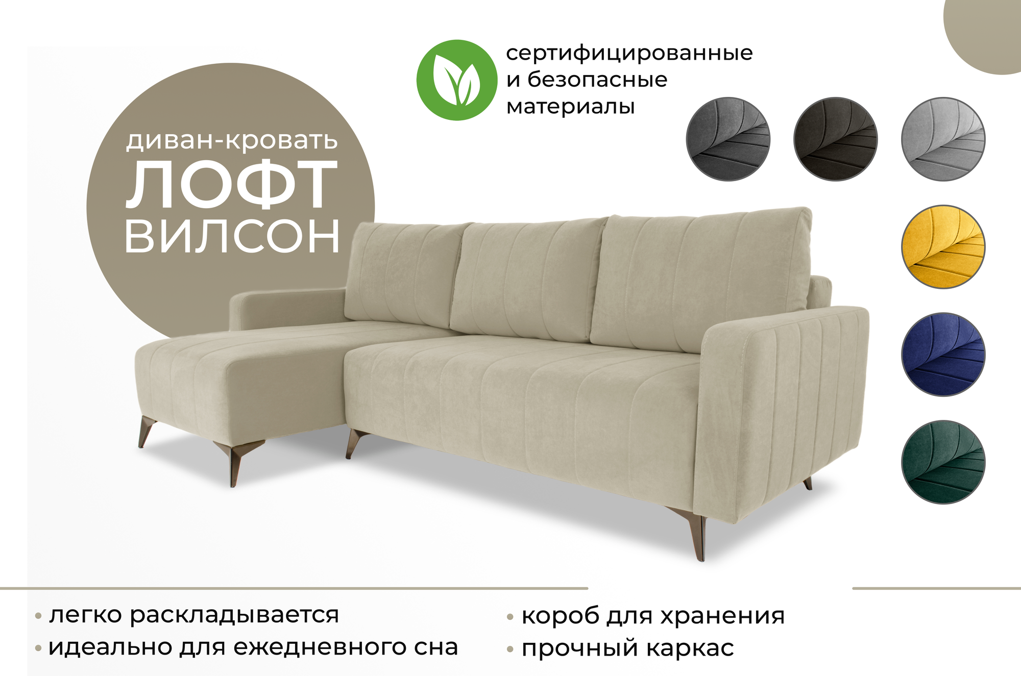 Ниже Вы можете прочитать отзывы на Раскладной двуспальный угловой диван кровать Лофт Вилсон 235х100см с шагающим механизмом пантограф на ножках для гостиной и спальни бежевый, ознакомится с подробными характеристиками, посмотреть интересные обзоры и фотографии на Раскладной двуспальный угловой диван кровать Лофт Вилсон 235х100см с шагающим механизмом пантограф на ножках для гостиной и спальни бежевый.