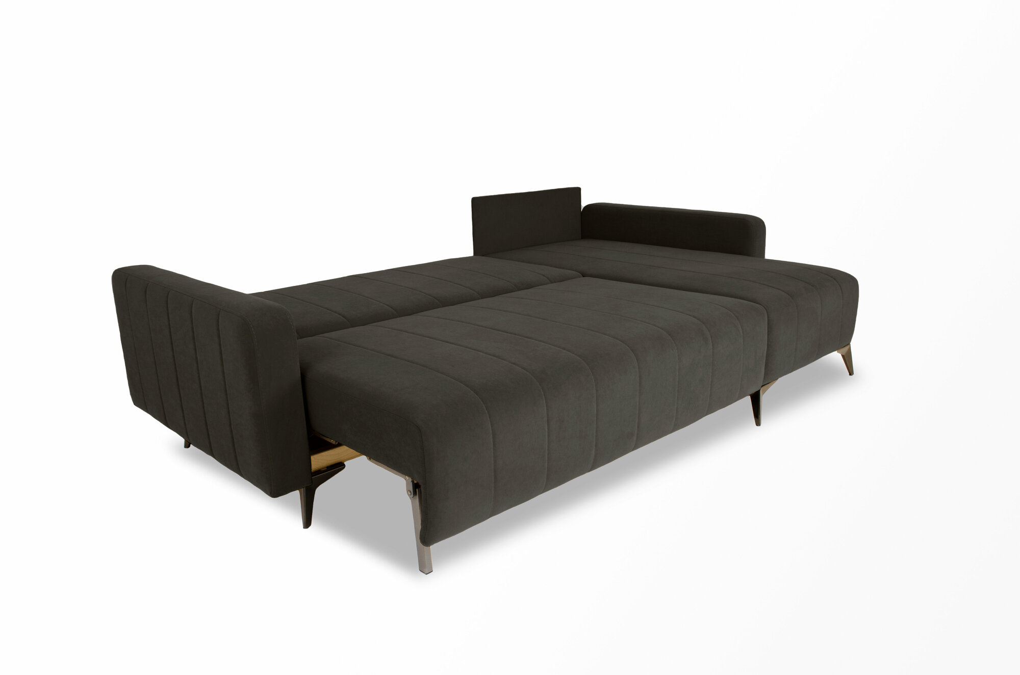 Раскладной двуспальный угловой диван кровать Лофт Вилсон 235х100см с шагающим механизмом пантограф на ножках для гостиной и спальни темно-серый
