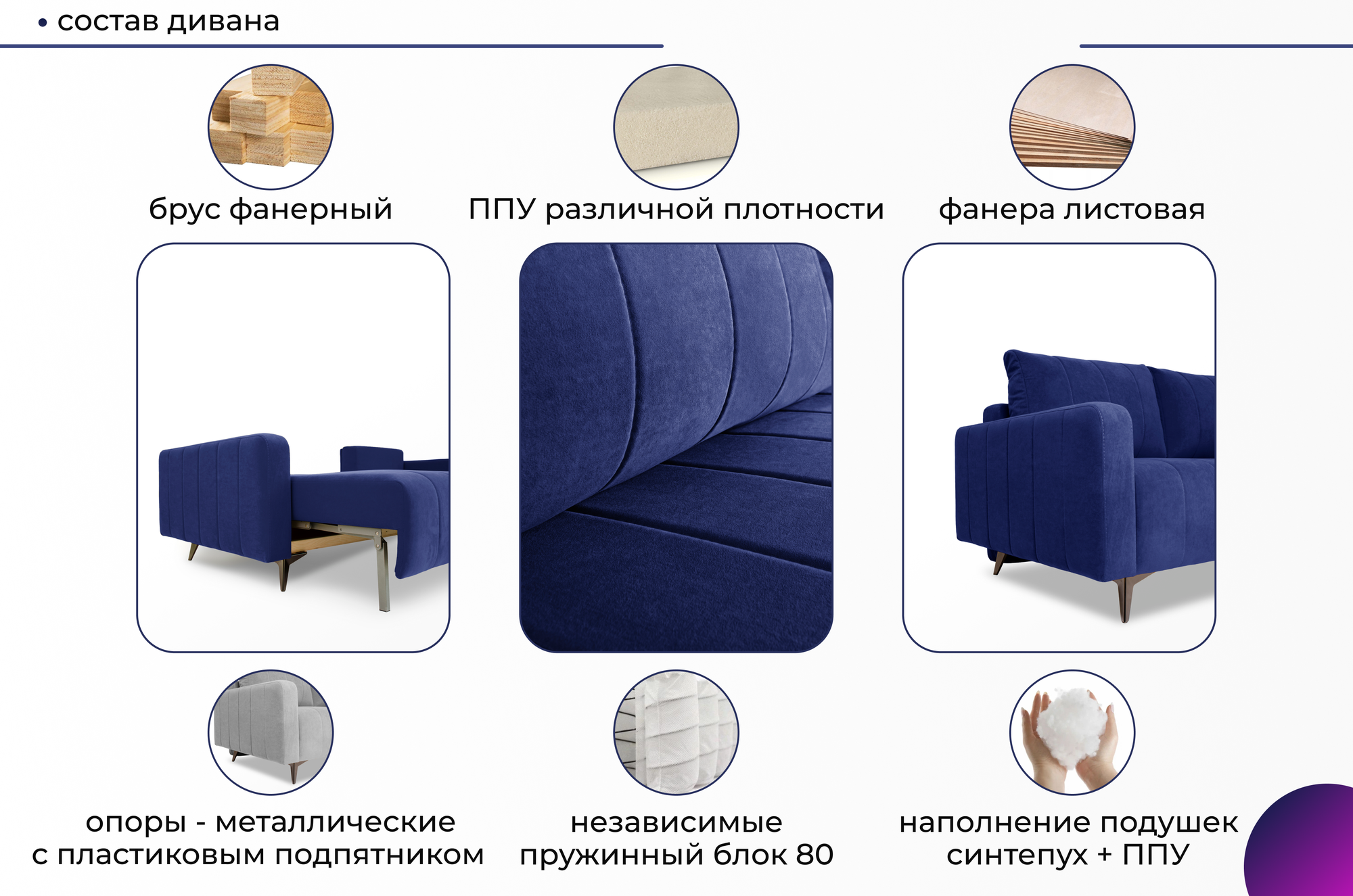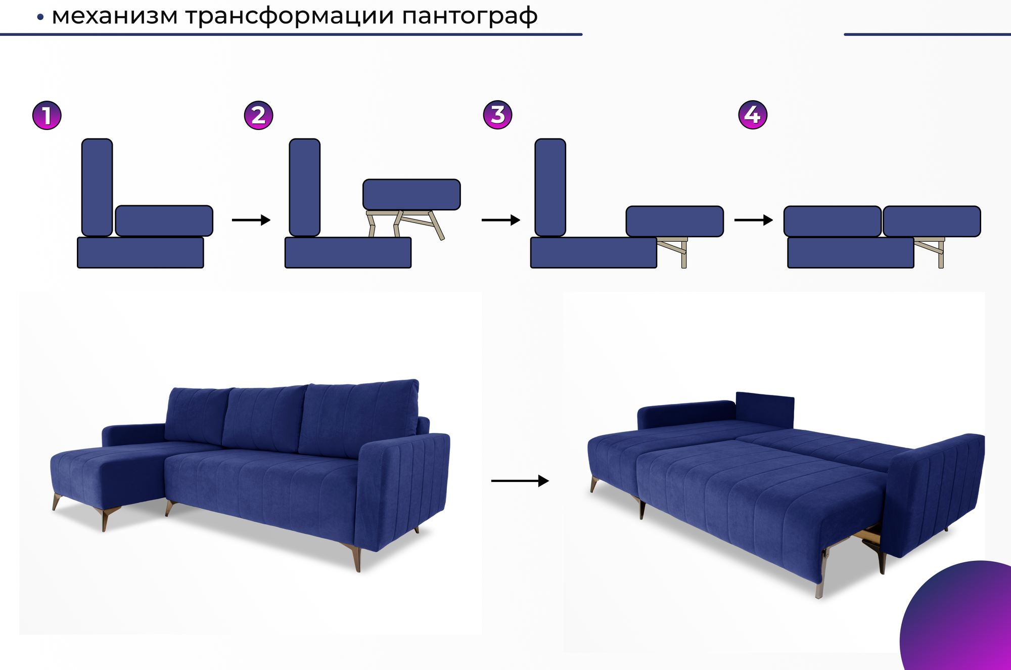 СохранитьРаскладной двуспальный угловой диван кровать Лофт Вилсон 235х100см с шагающим механизмом пантограф на ножках для гостиной и спальни синий интересное: