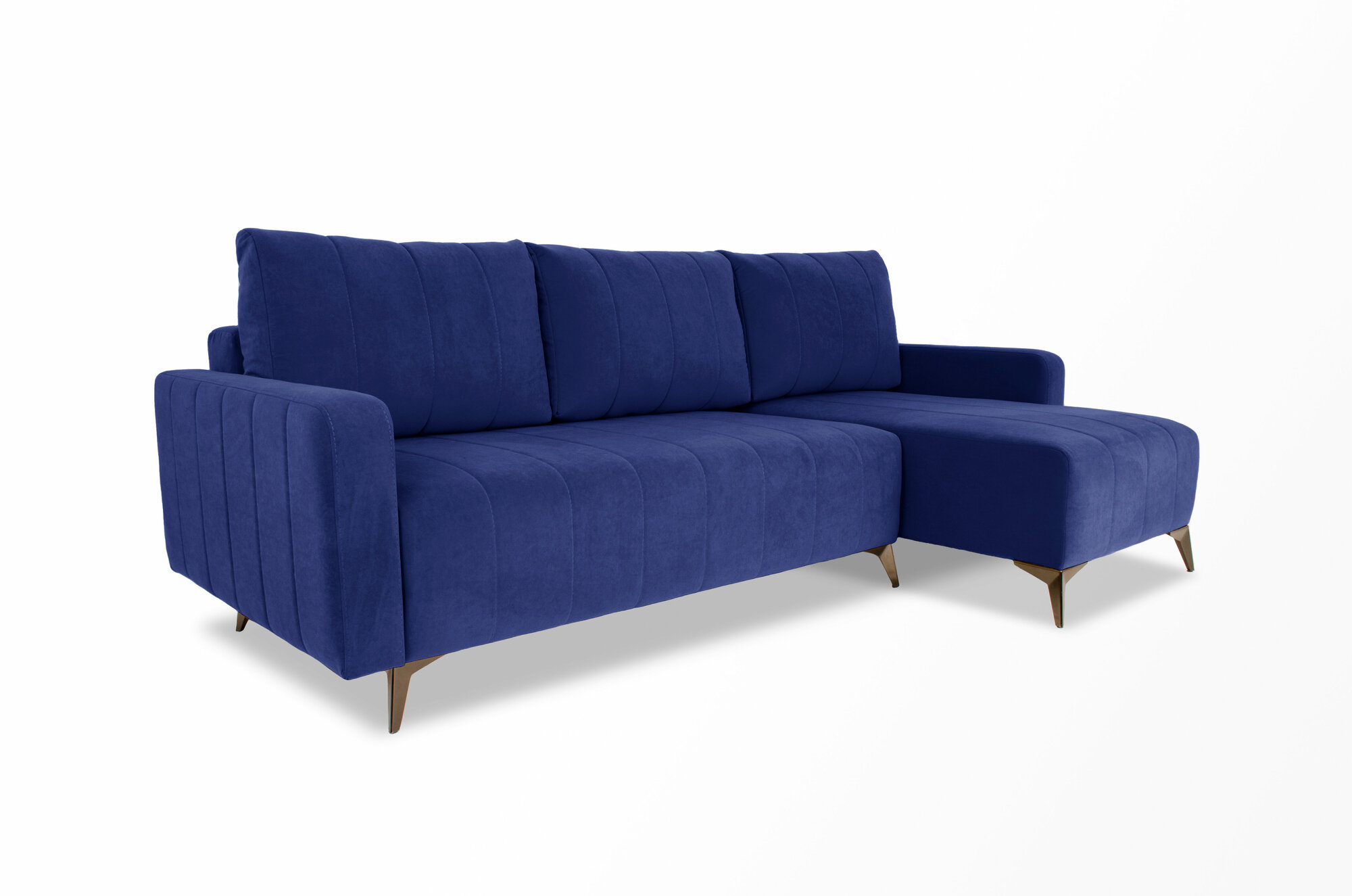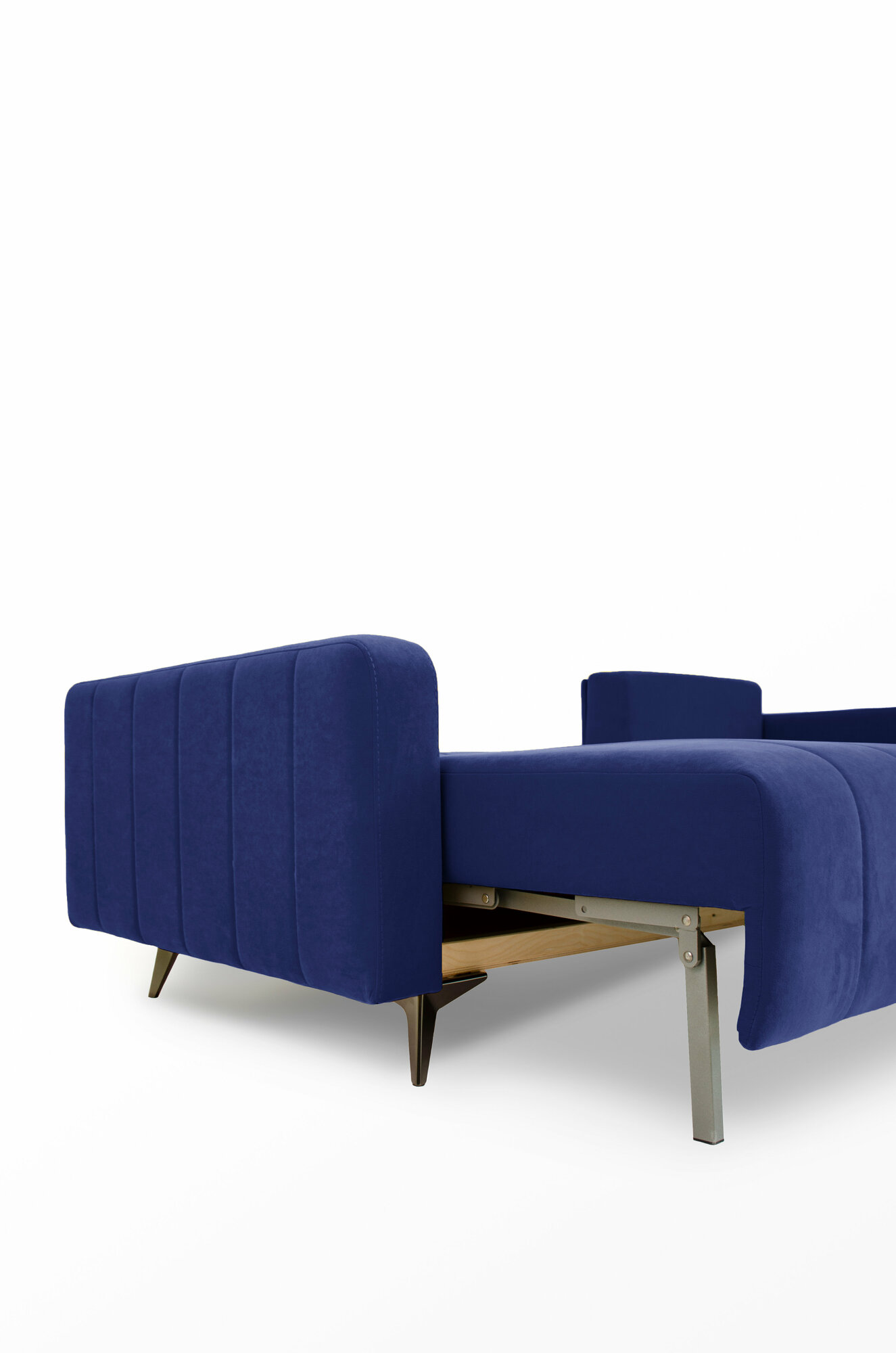 Купить Раскладной двуспальный угловой диван кровать Лофт Вилсон 235х100см с шагающим механизмом пантограф на ножках для гостиной и спальни синий
