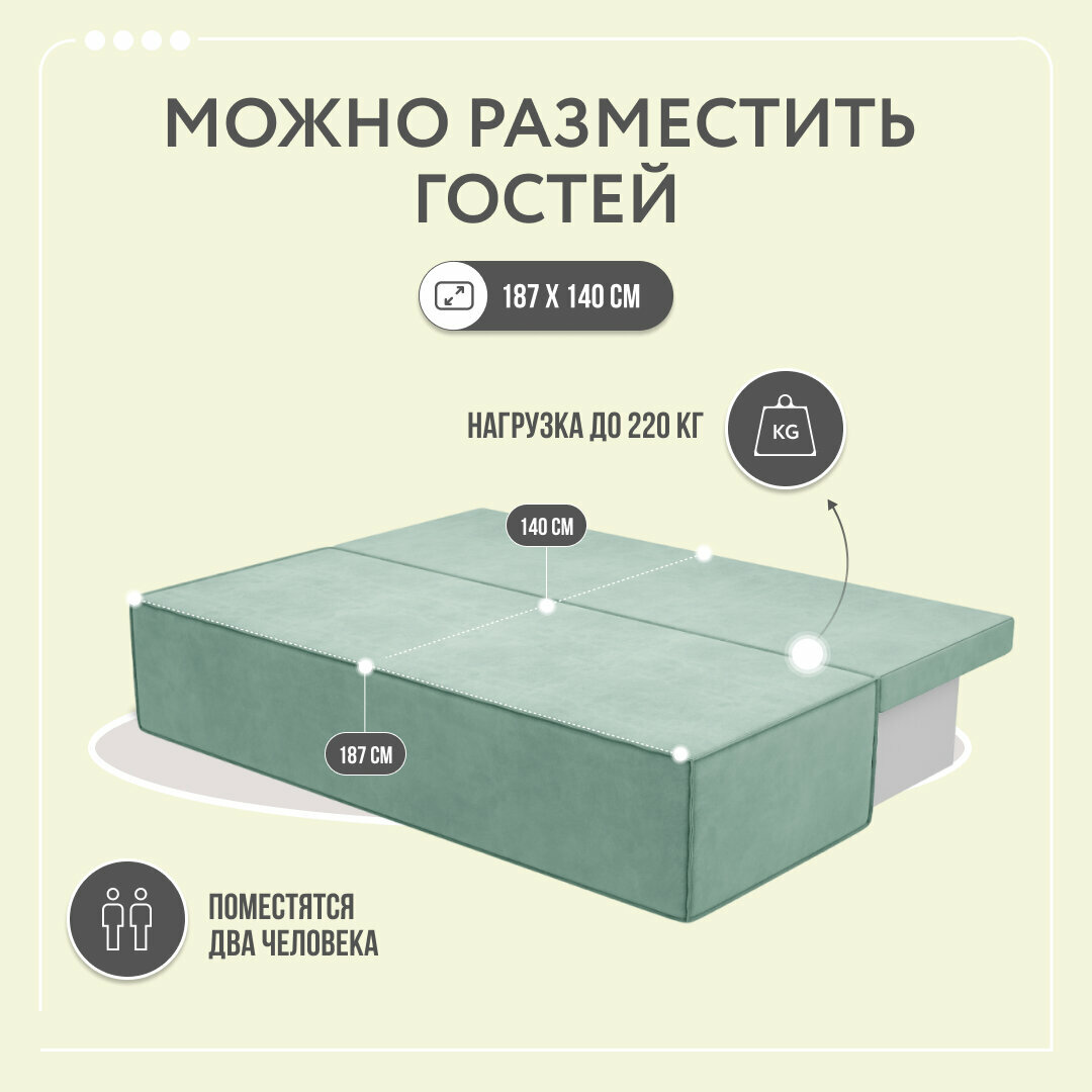 Диван-кровать раскладной прямой Веселая компания, еврокнижка, велюр, мятный, 184х87х76